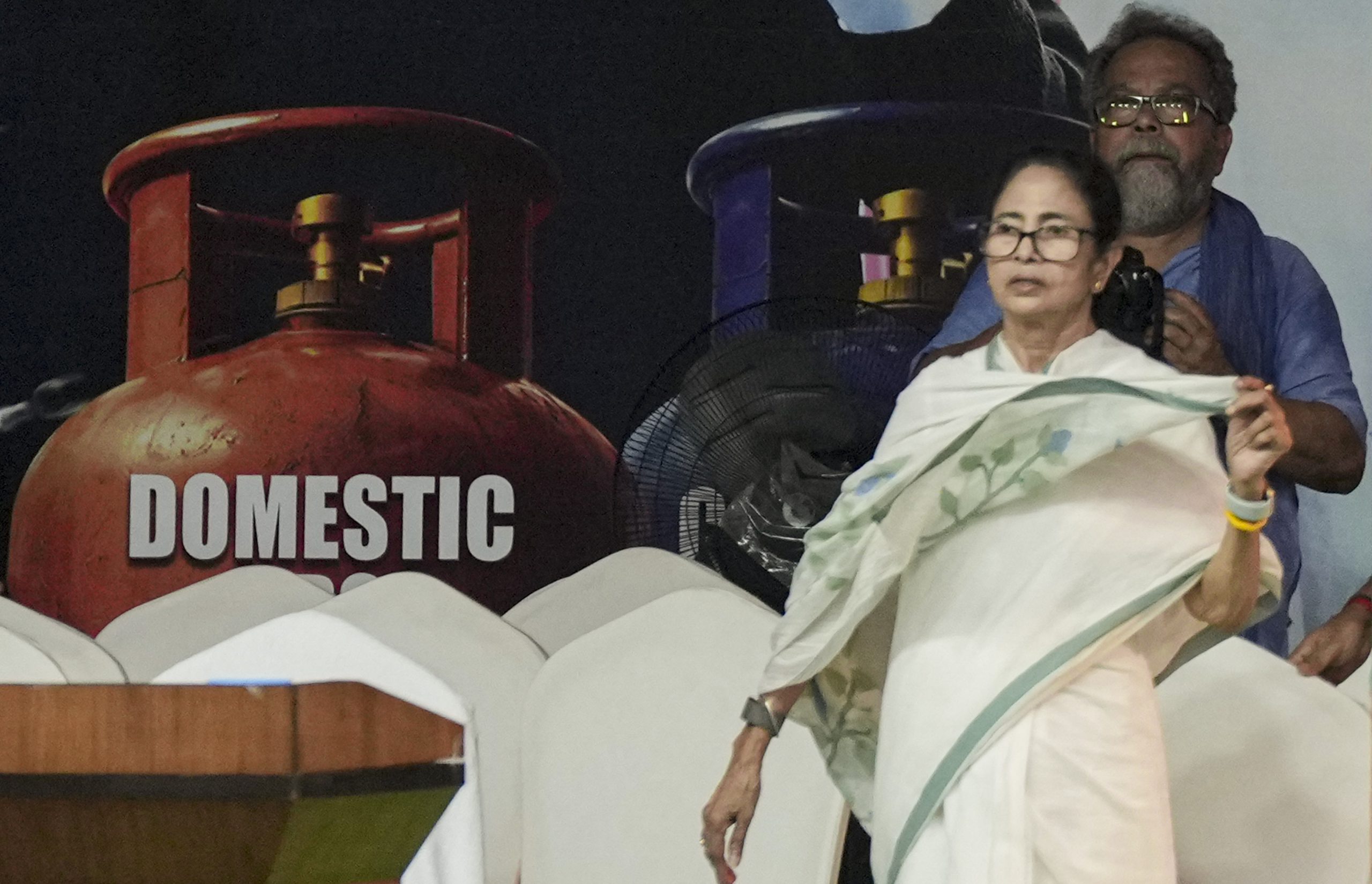 Kolkata: TMC supremo and West Bengal Chief Minister Mamata Banerjee during a rally protesting against the LPG price hike and supply crisis, in Kolkata, Monday, March 16, 2026. (PTI Photo/Swapan Mahapatra)(PTI03_16_2026_000300B)
