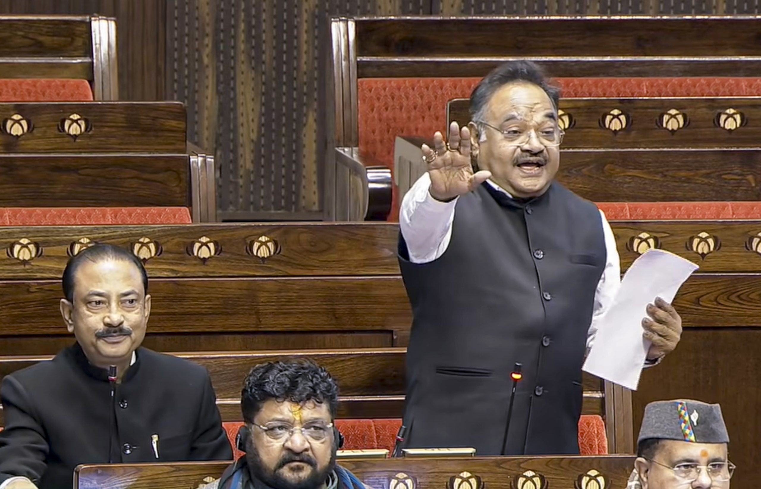 **EDS: THIRD PARTY IMAGE, SCREENGRAB VIA SANSAD TV** New Delhi: BJP MP Samik Bhattacharya speaks in the Rajya Sabha during the Budget session of Parliament, in New Delhi, Wednesday, Feb. 4, 2026. (Sansad TV via PTI Photo)(PTI02_04_2026_000136B)