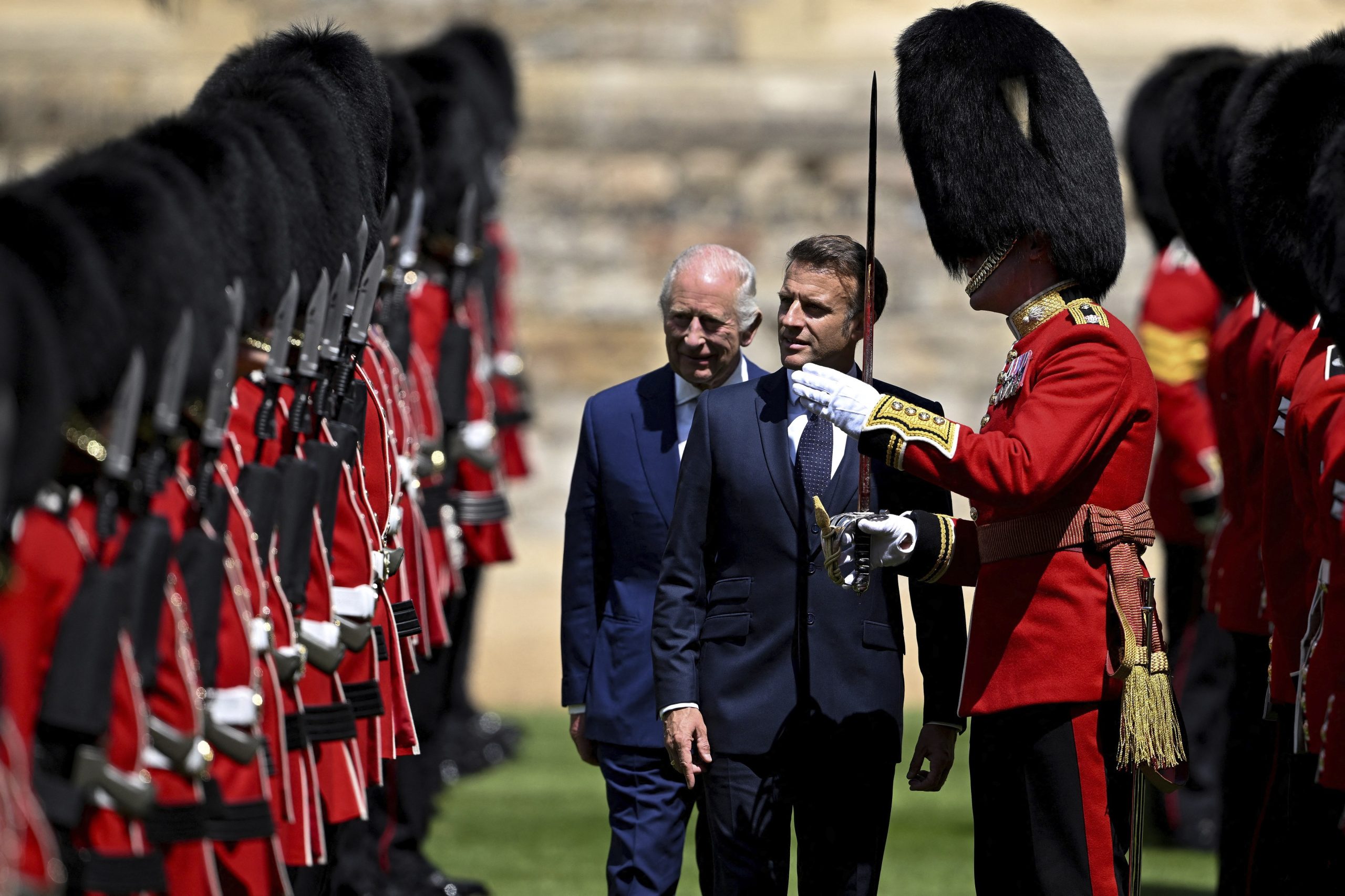 - ম্যাক্রোঁ ও তাঁর স্ত্রী ব্রিজিতকে স্বাগত জানান প্রিন্স উইলিয়াম, ক্যাথরিন, রাজা চার্লস ও রানি ক্যামিলা।