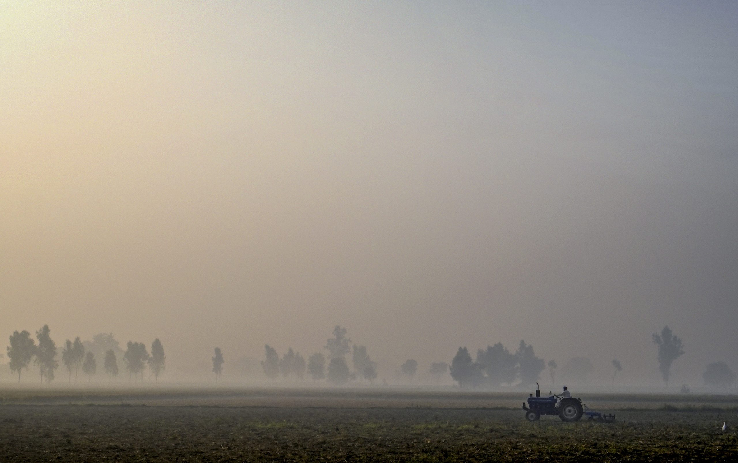 **EDS: RPT, CHANGES DATE**Amritsar: A farmer works in a field amid fog on a cold morning as temperature drops, in Amritsar, Monday, Nov. 3, 2025. (PTI Photo/Shiva Sharma)(PTI11_03_2025_RPT160B)