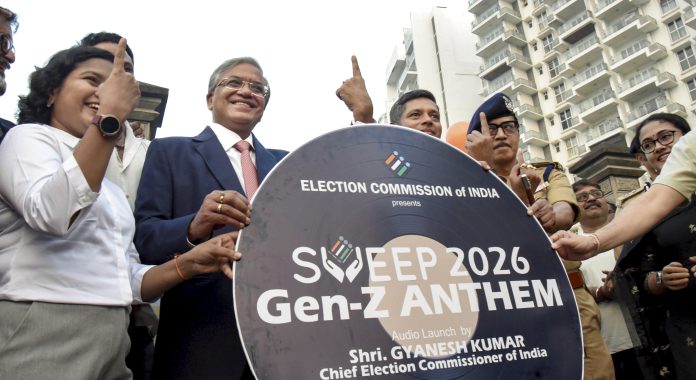 Kochi: Chief Election Commissioner Gyanesh Kumar poses for photographs during a voter awareness programme, in Kochi, Friday, March 6, 2026. (PTI Photo)(PTI03_06_2026_000042B)