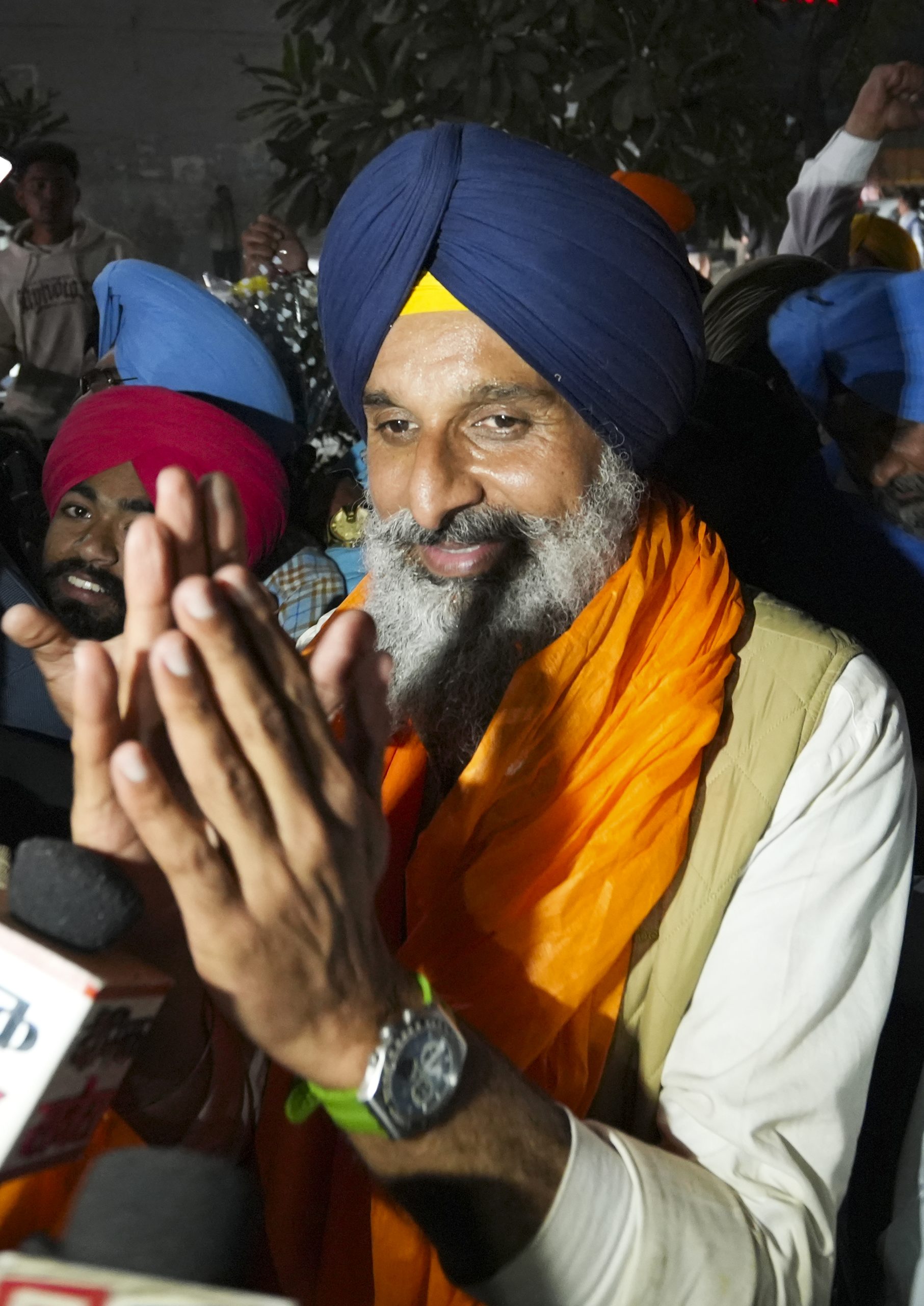 Amritsar: Senior Shiromani Akali Dal leader and former Punjab Cabinet minister Bikram Singh Majithia is welcomed by supporters upon his release from Nabha Jail after the Supreme Court granted him bail in a disproportionate assets case, in Amritsar, Monday, Feb. 9, 2026. (PTI Photo/Shiva Sharma)(PTI02_09_2026_000463B)