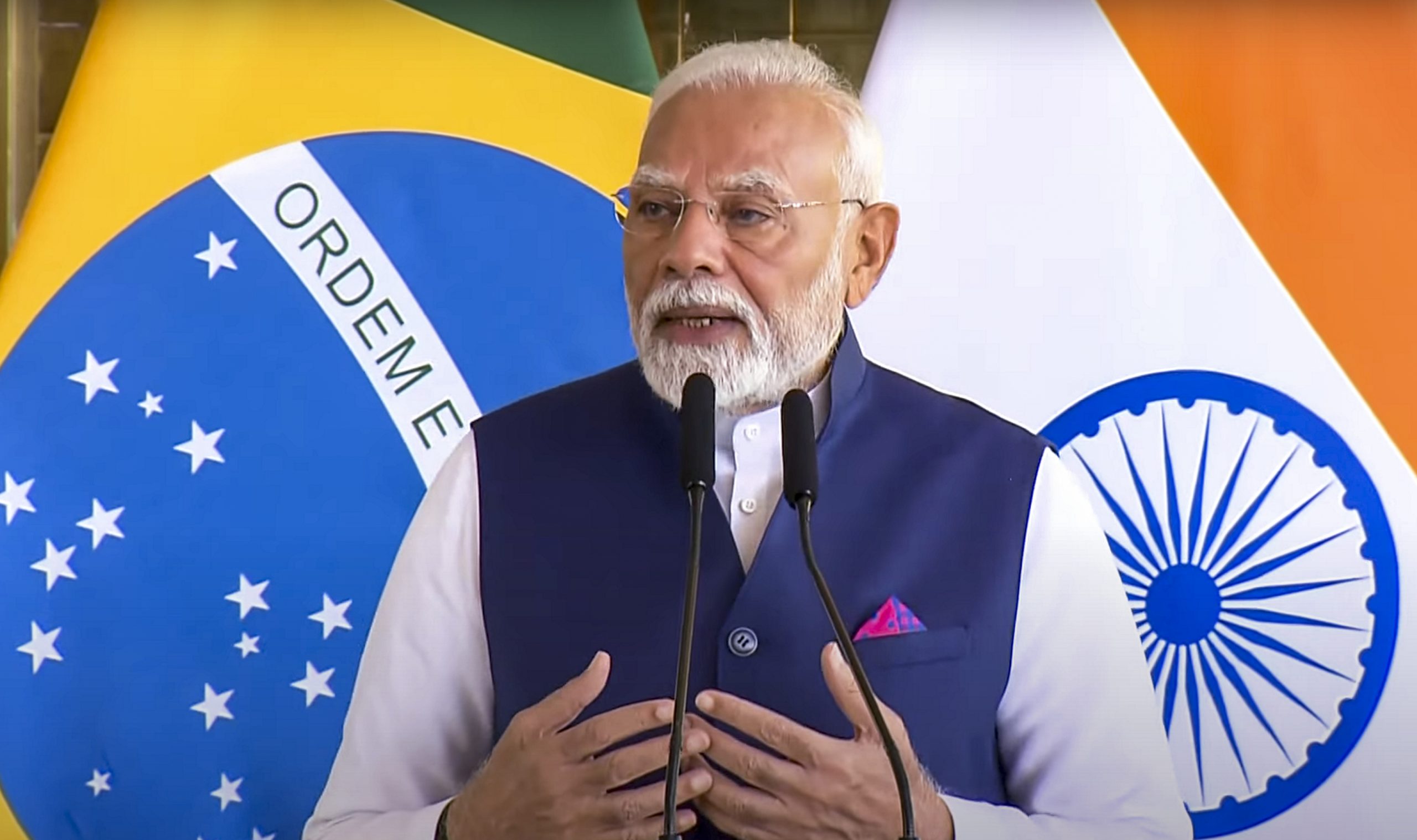 ਬਰਾਜ਼ੀਲੀਆ ਵਿੱਚ, ਪੀਐਮ ਮੋਦੀ ਨੇ ਰਾਸ਼ਟਰਪਤੀ ਲੂਲਾ ਨਾਲ “ਸਰਗਰਮ ਗੱਲਬਾਤ” ਕੀਤੀ, ਪ੍ਰਧਾਨ ਮੰਤਰੀ ਦਫ਼ਤਰ ਨੇ X ‘ਤੇ ਦੱਸਿਆ।