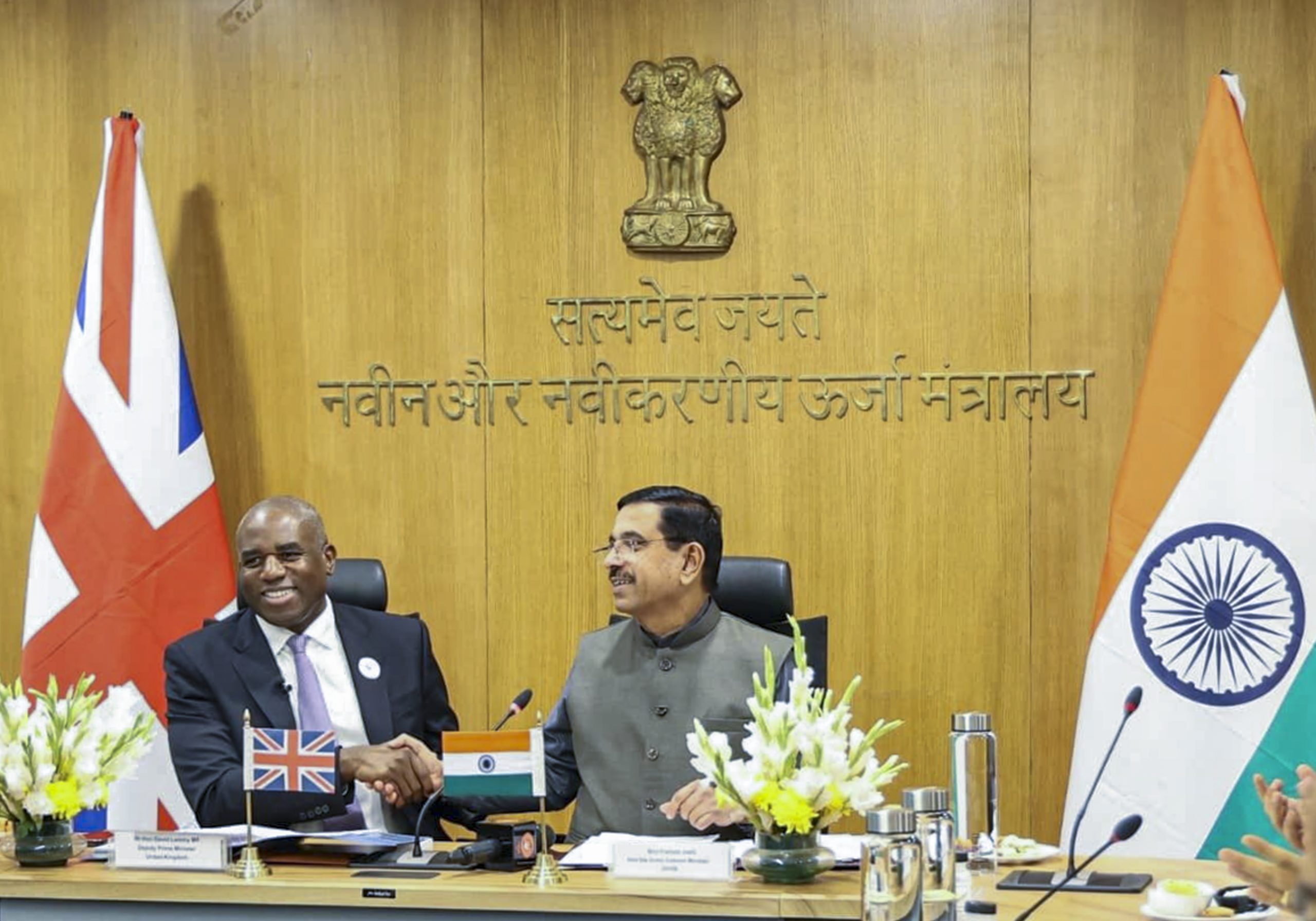 **EDS: THIRD PARTY IMAGE** In this image posted on Feb. 18, 2026, Union Minister Pralhad Joshi with United Kingdom Deputy Prime Minister David Lammy during the launch of the India-UK Offshore Wind Taskforce. (@JoshiPralhad/X via PTI Photo) (PTI02_18_2026_000350B)