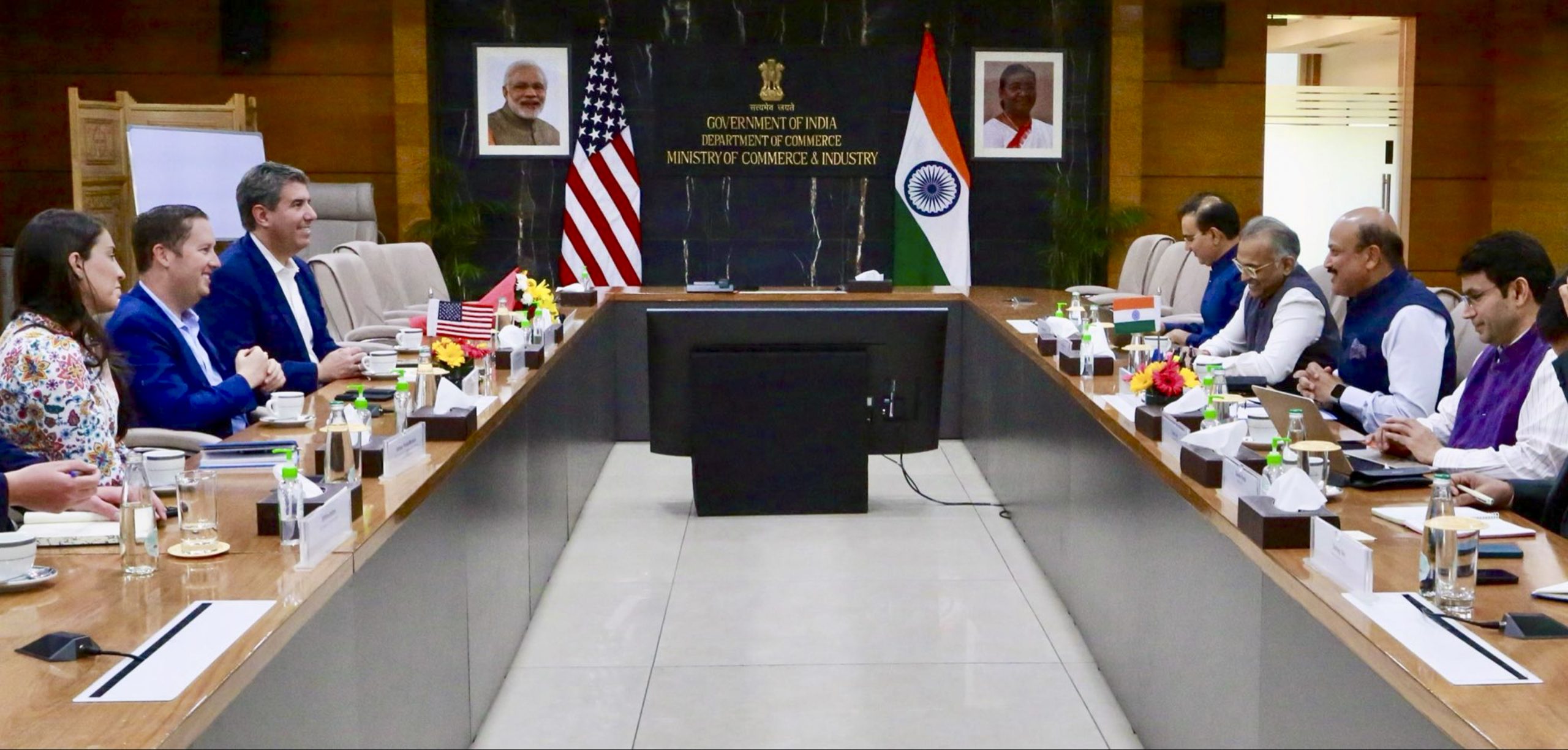 அமெரிக்காவின் நவீன நியமிக்கப்பட்ட தூதர் செர்ஜியோ கோர் வர்த்தக செயலாளர் அக்ரவாலுடன் சந்தித்தார்
