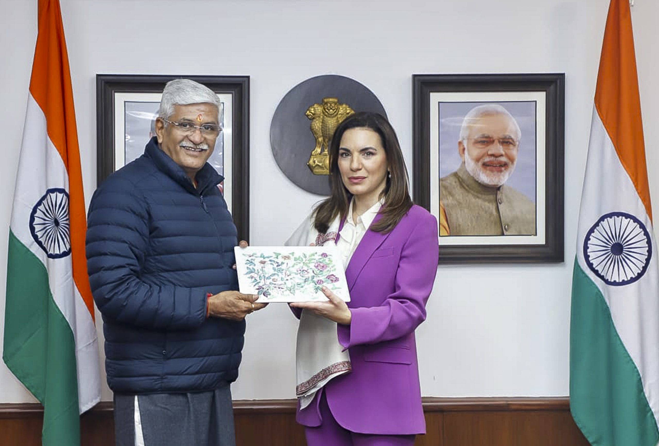 **EDS: THIRD PARTY IMAGE** In this image posted on Jan. 27, 2026, Union Minister Gajendra Singh Shekhawat meets Greece's Minister of Tourism Olga Kefalogianni at his office, in New Delhi. (@gssjodhpur/X via PTI Photo)(PTI01_27_2026_000260B) *** Local Caption ***