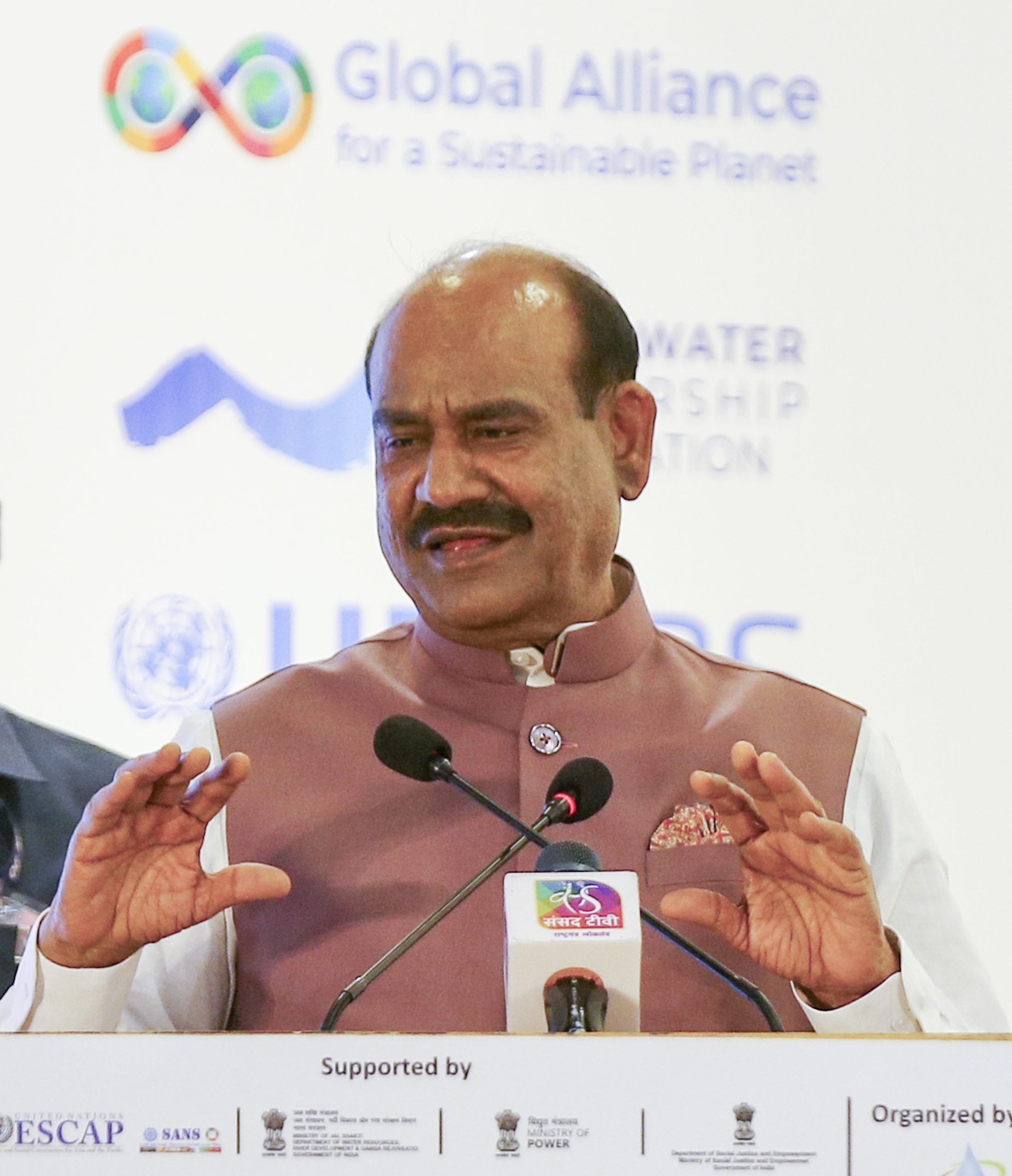 New Delhi: Lok Sabha Speaker Om Birla addresses the Water Transversality Global Awards and Conclave 2026, in New Delhi, Friday, March 6, 2026. (PTI Photo) (PTI03_06_2026_000367B)
