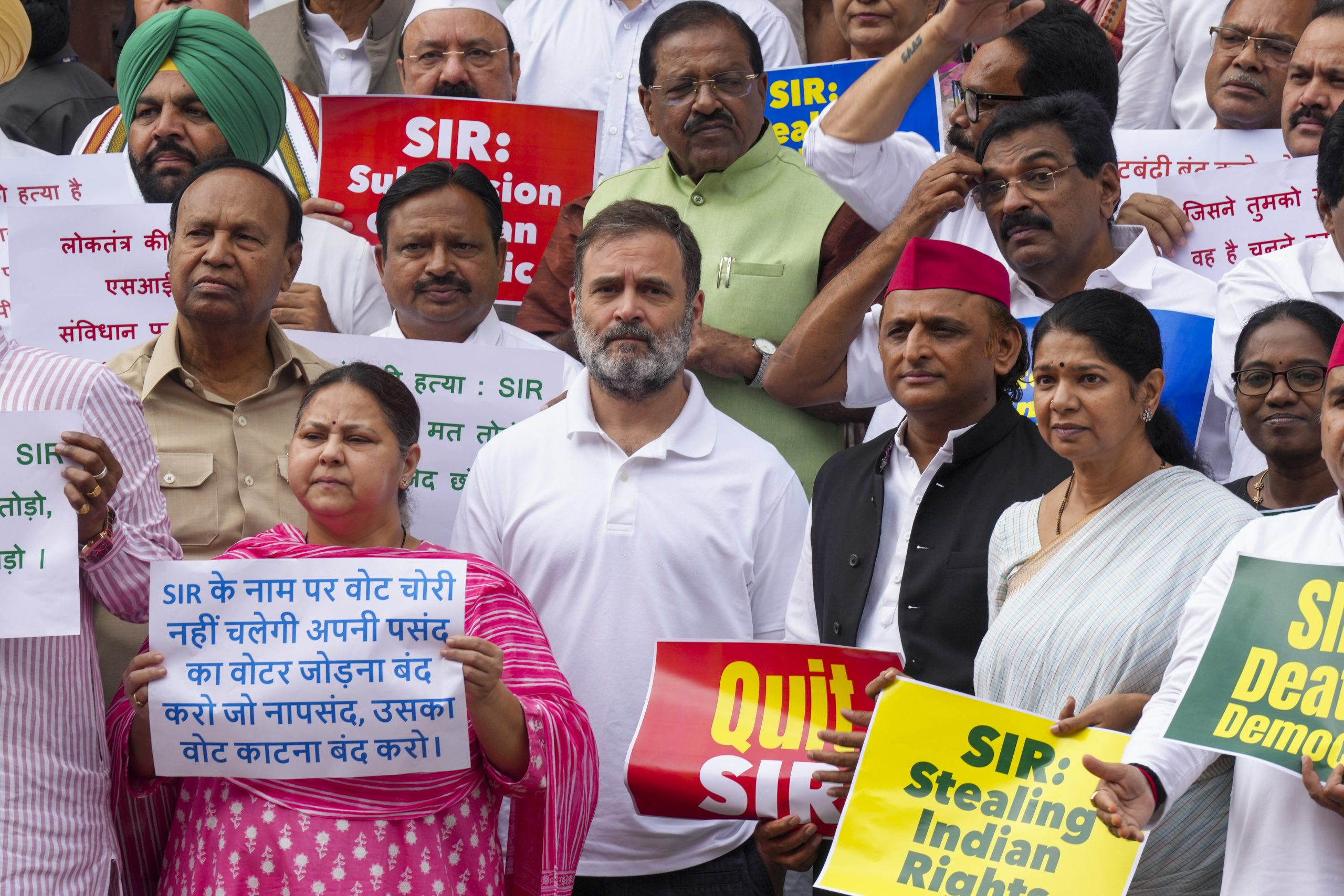செவ்வாயன்று, ஆர்ஜேடி, காங்கிரஸ் மற்றும் இடதுசாரி சட்டமன்ற உறுப்பினர்கள், சபை நடவடிக்கைகள் தொடங்குவதற்கு முன்பு, கருப்பு உடை அணிந்து, எஸ்ஐஆருக்கு எதிராக கோஷங்களை எழுப்பி, சட்டமன்றத்தின் பிரதான நுழைவாயிலின் முன் ஆர்ப்பாட்டம் நடத்தியபோது தங்கள் நோக்கத்தை தெளிவுபடுத்தினர்.