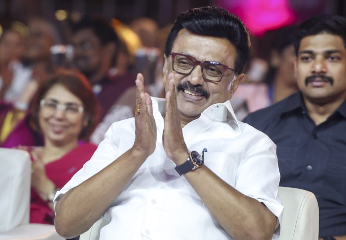 Chennai: Tamil Nadu Chief Minister MK Stalin during the launch of the second-phase expansion of the Kalaignar Magalir Urimai Thogai (Kalaignar Women's Entitlement Amount) scheme, extending monthly financial assistance to 17 lakh newly included women beneficiaries across the state, in Chennai, Friday, Dec. 12, 2025. (PTI Photo)(PTI12_12_2025_000447B)
