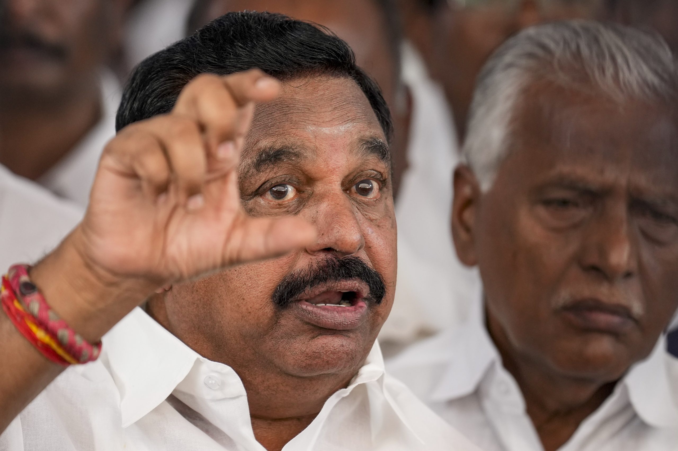 Chennai: Leader of Opposition in Tamil Nadu Assembly Edappadi K Palaniswami addresses the media after a walkout by AIADMK MLAs during ongoing state Assembly session, at Fort St. George, in Chennai, Wednesday, Oct. 15, 2025. The September 27 Karur stampede, which claimed 41 lives at actor-politician Vijay's TVK rally, rocked the Assembly on Wednesday and the main opposition AIADMK staged a walkout. (PTI Photo/R Senthilkumar) (PTI10_15_2025_000146B)