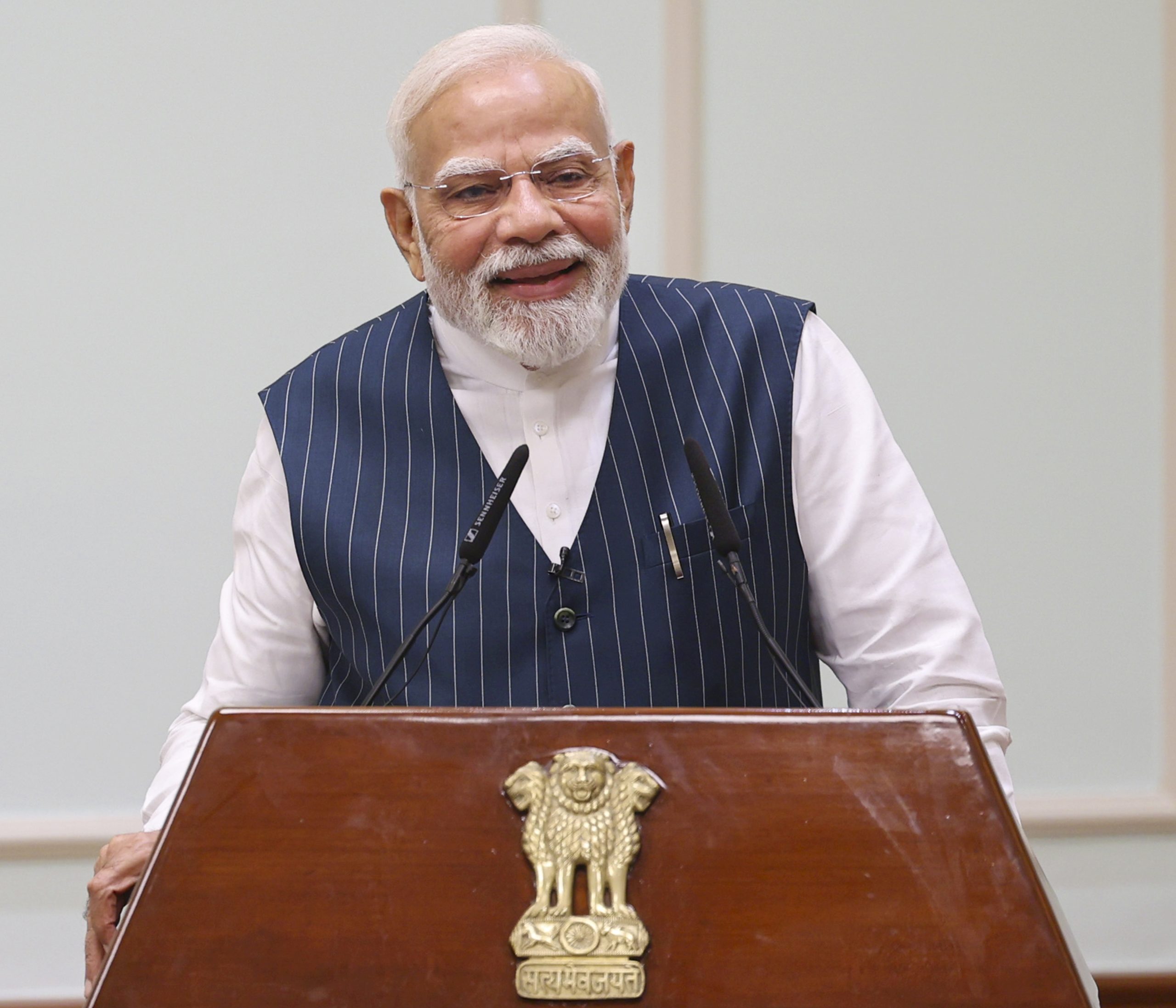 **EDS: THIRD PARTY IMAGE** In this image received on Sept. 4, 2025, Prime Minister Narendra Modi addresses a gathering during a meeting with winners of National Teachers Awards, 2025, at his official residence, in New Delhi. (PMO via PTI Photo) (PTI09_04_2025_000390B)