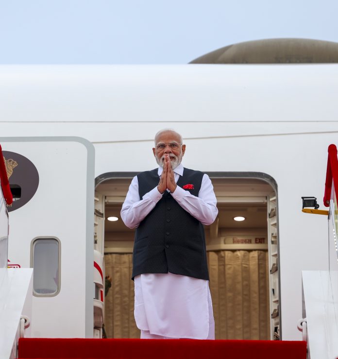 **EDS: THIRD PARTY IMAGE** In this image released on Aug. 30, 2025, Prime Minister Narendra Modi greets upon his arrival at the airport, in Tianjin, China. (PMO via PTI Photo) (PTI08_30_2025_000306B)