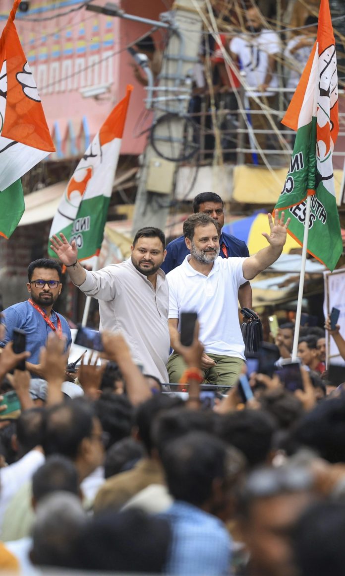 சசாரம்/ஔரங்காபாத் (பிஹார்), ஆகஸ்ட் 17 (பிடிஐ) – சசாராமில் இருந்து 16 நாட்கள் நீளும் ‘வாக்காளர் உரிமை யாத்திரை’யை தொடங்கிய காங்கிரஸ் தலைவர் ராகுல் காந்தி, தேர்தல் ஆணையம் பாஜகவுடன் சேர்ந்து தேர்தல்களை திருடி வருகின்றது என்று ஞாயிறு குற்றம்சாட்டினார். இந்தியா (INDIA) கூட்டணி பிஹார் தேர்தலை சிறப்பு தீவிர திருத்தம் (SIR) மூலம் திருடும் சதியை தடுக்கப்போவதாக அவர் உறுதியளித்தார்.