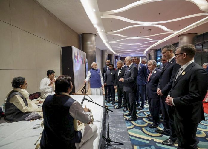 இலங்கை அதிபர் அனுரா குமார தீசநாயக்க மற்றும் பூட்டான் பிரதமர் சேரிங் டொப்காய் உட்பட உலகத் தலைவர்களை, டிரம்ஸ், நாடச்வரம் மற்றும் தான்புரா போன்ற பாரம்பரிய இசைக்கருவிகளுடன் வரவேற்றனர், பிரதமர் அவர்களை மனமுவந்து கையெழுத்து மாற்றம் மற்றும் நட்புச் சொல்லாட்டத்துடன் வரவேற்றார்.