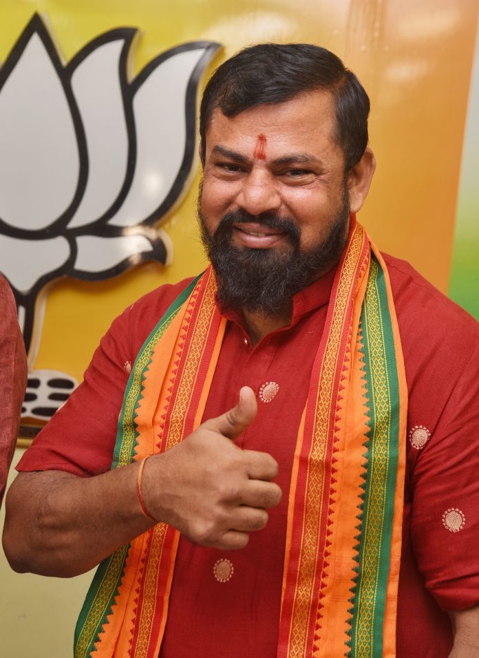 **EDS: FILE PHOTO** Hyderabad: In this Oct. 22, 2023 file photo, MLA T Raja Singh celebrates after BJP lifted his suspension allowing him to be a candidate for the Goshamahal assembly seat for the Telangana Assembly polls, in Hyderabad. Singh on Monday, June 30, 2025 resigned from BJP. (PTI Photo)(PTI06_30_2025_000175B)