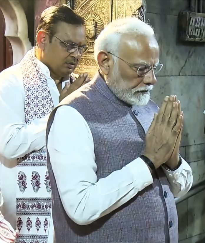 **EDS: THIRD PARTY IMAGE** In this screengrab from a video released by PMO on May 22, 2025, Prime Minister Narendra Modi and Rajasthan Chief Minister Bhajanlal Sharma offer prayers at Karni Mata temple, Deshnoke, in Bikaner district, Rajasthan. (PMO via PTI Photo) (PTI05_22_2025_000047B) *** Local Caption ***