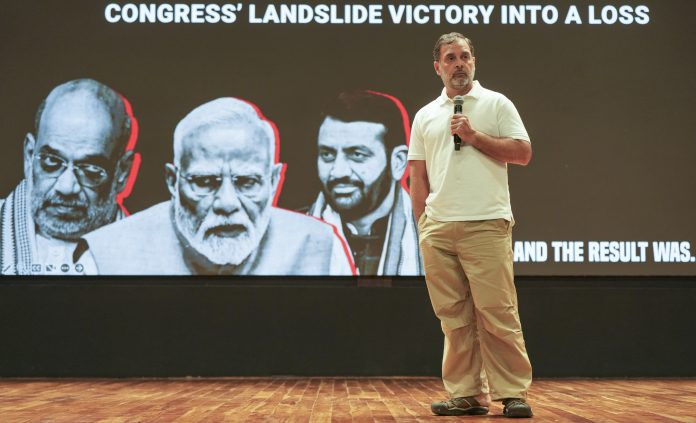 ಗಾಂಧಿಯವರು “ಆಪರೇಶನ್ ಸರ್ಕಾರ ಚೋರಿ” ಎಂಬ ಯೋಜನೆ ಮೂಲಕ ಕಾಂಗ್ರೆಸ್‌ನ ಭಾರೀ ಗೆಲುವನ್ನು ಸೋಲಾಗಿ ಪರಿವರ್ತಿಸಲು ಚುನಾವಣಾ ಆಯೋಗ ಕಾರ್ಯನಿರ್ವಹಿಸಿದೆ ಎಂದು ಆರೋಪಿಸಿದರು.
