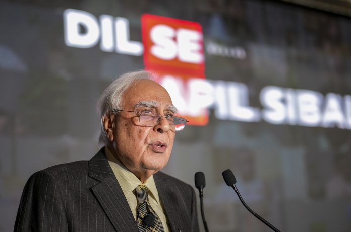 New Delhi: Senior advocate Kapil Sibal speaks during the release of the 100th episode of the online show 'Dil Se With Kapil Sibal', New Delhi, Saturday, Nov. 15, 2025. (PTI Photo/Karma Bhutia)(PTI11_15_2025_000437B)