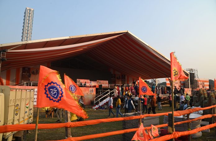 കാവി മത പതാകകൾ വീശി, പങ്കെടുക്കുന്നവർ രാവിലെ മുതൽ വേദിയിലേക്ക് ഒഴുകിയെത്തി, പലരും ഗീതയുടെ പകർപ്പുകൾ വഹിച്ചുകൊണ്ട്. ദിവസം മുഴുവൻ നീണ്ടുനിൽക്കുന്ന പരിപാടിയുടെ ഗതി നിർണയിക്കുന്ന സാംസ്കാരിക പ്രകടനങ്ങൾ ഇതിനകം ആരംഭിച്ചു.