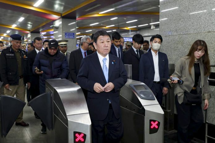 ന്യൂഡൽഹി, ജനുവരി 18 (പി.ടി.ഐ): ജപ്പാൻ വിദേശകാര്യ മന്ത്രി തോശിമിത്സു മൊതേഗി ശനിയാഴ്ച ദേശീയ തലസ്ഥാന സന്ദർശനത്തിനിടെ ഇന്ത്യയിലെ ജപ്പാൻ അംബാസഡർ കെയിചി ഓനോയോടൊപ്പം ഡെൽഹി മെട്രോയിൽ യാത്ര ചെയ്തു.