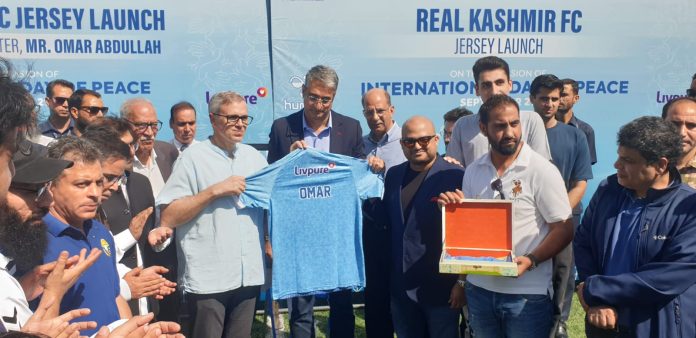 ഡാനിഷ് സ്പോർട്സ് വെയർ ബ്രാൻഡായ ഹമ്മലുമായി സഹകരിച്ച് രൂപകൽപ്പന ചെയ്ത റിയൽ കശ്മീർ എഫ്സിയുടെ പ്രത്യേക പതിപ്പായ പീസ് ജേഴ്സി ഡൽഹിയിലെ ടിആർസി ഗ്രൌണ്ടിൽ നടന്ന ചടങ്ങിൽ അനാച്ഛാദനം ചെയ്ത മുഖ്യമന്ത്രി, ജമ്മു കശ്മീരിലുടനീളം സമാധാനവും ഐക്യവും സാമൂഹിക മനോഭാവവും വളർത്തുന്നതിനുള്ള കായിക ശക്തിയുടെ പ്രതീകമാണ് ഈ സംരംഭമെന്ന് പറഞ്ഞു.