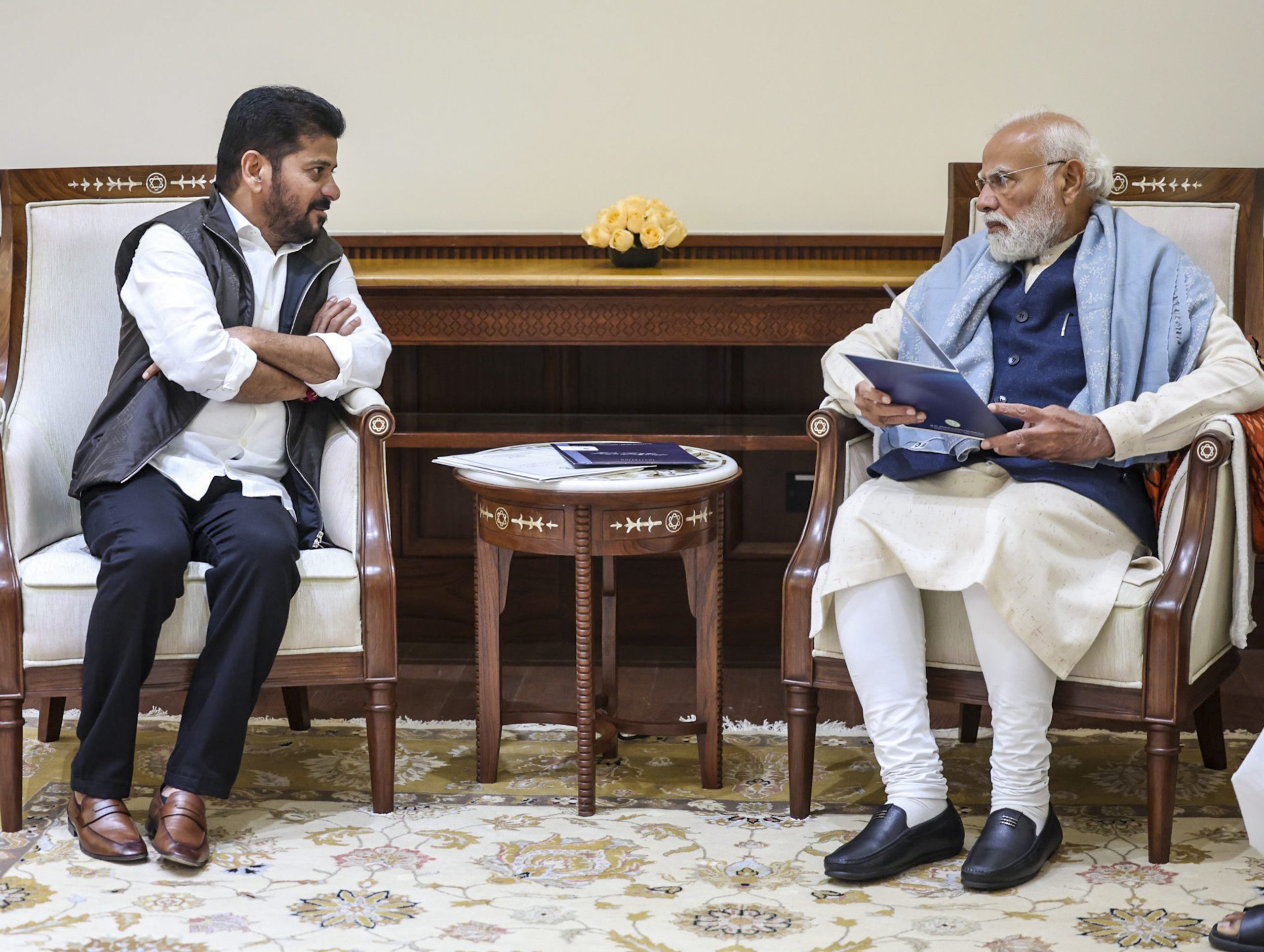 ന്യൂഡൽഹി, ഡിസം. 3 (PTI): കേന്ദ്ര സർക്കാരിന്റെ ‘വിക്സിത് ഭാരത് 2047’ ദർശനത്തിന് അനുസരിച്ച് സംസ്ഥാനത്തെ 3 ട്രില്ലിയൺ യുഎസ് ഡോളർ സമ്പദ്വ്യവസ്ഥയാക്കി ഉയർത്താനുള്ള ലക്ഷ്യത്തെക്കുറിച്ച് വിശദീകരിച്ചുകൊണ്ട് തെലങ്കാന മുഖ്യമന്ത്രി എ. രേവന്ത് റെడ్డి ബുധനാഴ്ച പ്രധാനമന്ത്രി നരേന്ദ്ര മോദിയെ ‘തെലങ്കാന റൈസിംഗ് ഗ്ലോബൽ സമിറ്റ്’ിലേക്ക് ക്ഷണിച്ചു.