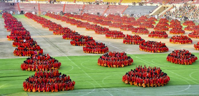 ഗുവാഹത്തി, ജനുവരി 17 (പിടിഐ) പരമ്പരാഗത ബാഗുരുംബ നൃത്തത്തിന്റെ പ്രകൃതിയിൽ നിന്ന് പ്രചോദനം ഉൾക്കൊണ്ടുള്ള ചലനങ്ങൾ, പലപ്പോഴും ചിത്രശലഭങ്ങളുടെ ചിറകടിയോട് ഉപമിക്കപ്പെടുന്നു, ശനിയാഴ്ച ഗുവാഹത്തിയിൽ 10,000-ത്തിലധികം കലാകാരന്മാർ ബോഡോ സമൂഹത്തിന്റെ പൈതൃകം പ്രദർശിപ്പിക്കുന്ന ഒരു ഗംഭീര അവതരണം അവതരിപ്പിക്കുമ്പോൾ, പ്രധാനമന്ത്രി നരേന്ദ്ര മോദി പങ്കെടുക്കും.