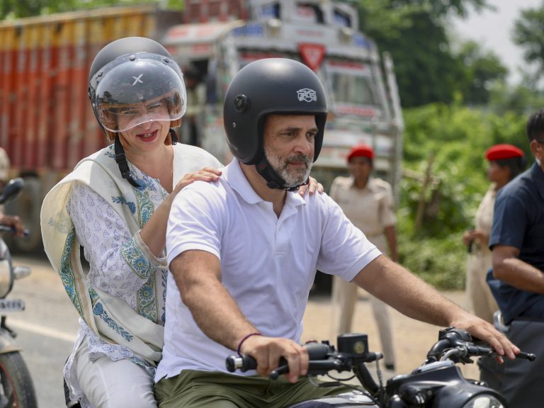 മുതിർന്ന കോൺഗ്രസ് നേതാവ് പ്രിയങ്കാ ഗാന്ധി വാദ്ര സഹോദരന്റെ മോട്ടോർ സൈക്കിളിൽ യാത്ര ചെയ്യുന്നത് കണ്ടു. അവരെ സ്വാഗതം ചെയ്യാൻ ആളുകൾ തെരുവുകളിൽ അണിനിരന്നു.