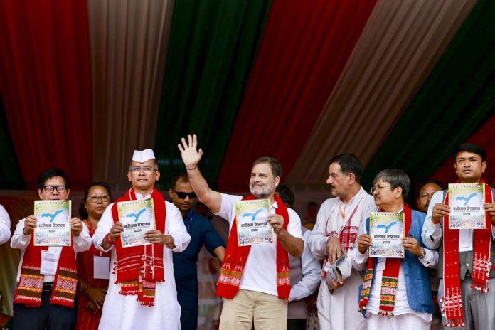 ഇവിടെ നടന്ന തിരഞ്ഞെടുപ്പ് റാലിയിൽ രാഹുൽ ഗാന്ധി, അസം കോൺഗ്രസ് അധ്യക്ഷൻ ഗൌരവ് ഗൊഗോയ്, മറ്റ് മുതിർന്ന നേതാക്കൾ എന്നിവർ പാർട്ടി പ്രകടനപത്രിക പുറത്തിറക്കി.