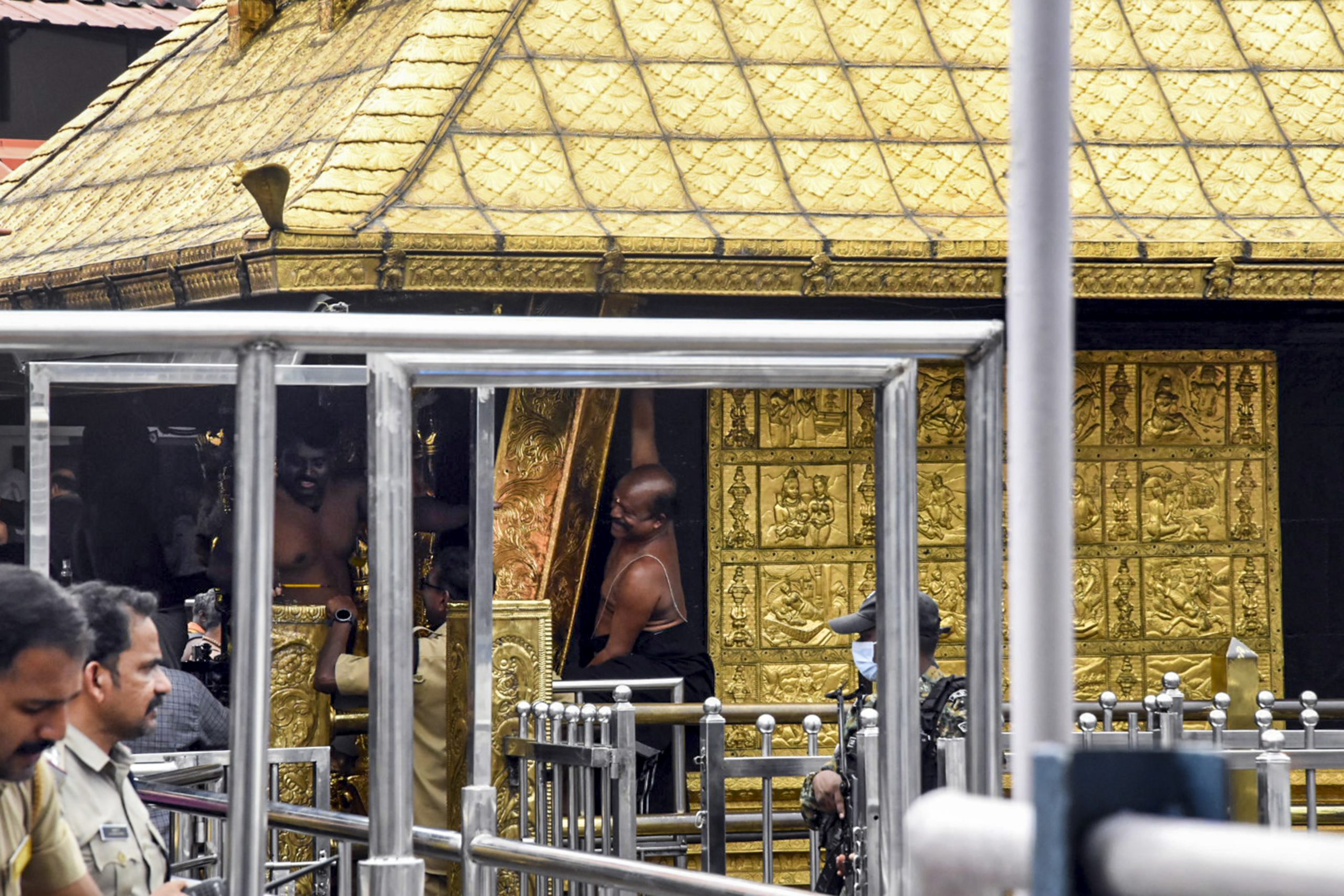 പോലീസ് വൃത്തങ്ങൾ പ്രകാരം, എസ്‌ഐടിയെ സഹായിക്കുന്ന ഉദ്യോഗസ്ഥർ വ്യാഴാഴ്ച ശ്രീകോവിലിലെ ഒരു ഭാഗത്തിലെ സ്വർണപൂശിയ പൊതിപ്പ് നീക്കം ചെയ്തു.