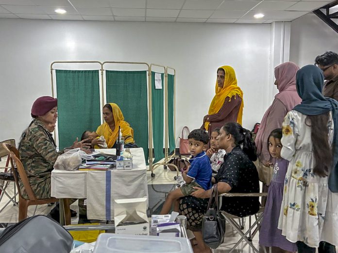 **EDS: THIRD PARTY IMAGE** In this image posted on Dec. 6, 2025, Patients receive treatment at a field hospital set up by the Indian Army's medical team as part of Operation Sagar Bandhu, in cyclone-hit Sri Lanka. (@IndiainSL/X via PTI Photo)(PTI12_06_2025_000406B)