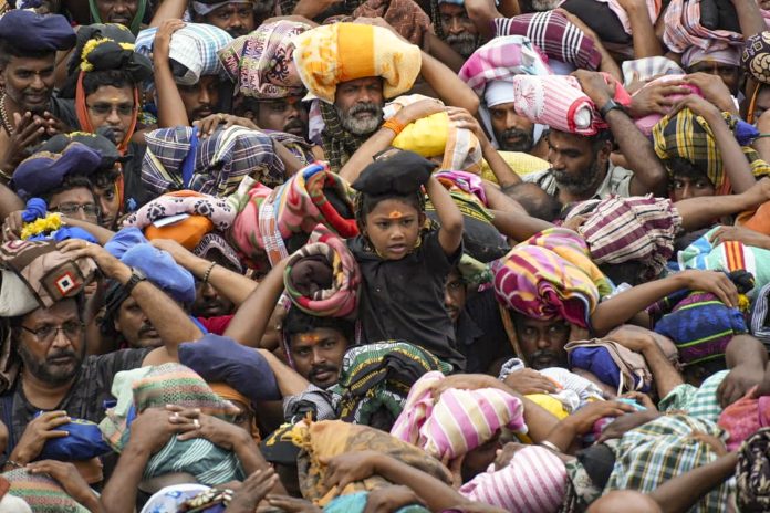 Pathanamthitta: People wait to offer prayers at the Sabarimala temple during the Malayalam month of 'Vrichikam', in Pathanamthitta district, Kerala, Friday, Nov. 28, 2025. (PTI Photo)(PTI11_28_2025_000155B)