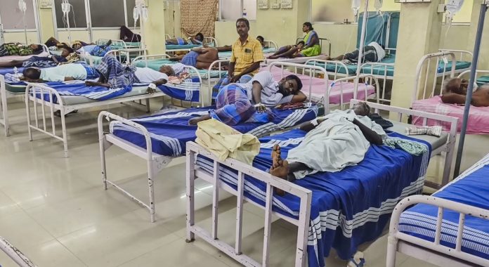 **EDS: SCREENSHOT VIA PTI VIDEOS** Virudhunagar: Patients undergo treatment after over 100 devotees were hospitalised following the consumption of food served as part of the 'anna dhana' (food charity) at a temple, in Virudhunagar district in Tamil Nadu, Wednesday, June 11, 2025. (PTI Photo) (PTI06_11_2025_000280B)
