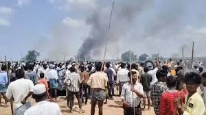 Scores of villagers gathered near Pedda Dhanwada in Rajoli mandal on Wednesday, demanding that the government revoke permission for the project. The protesters from seven to eight surrounding villages, allegedly set fire to temporary shelters and a container placed by the company at the site TV visuals showed some protesters overturning a four-wheeler and striking it with sticks and pelted stones. An earth mover’s window was damaged. Police intervened and dispersed the protesters.