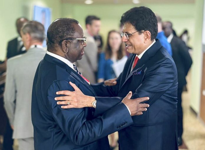 **EDS: THIRD PARTY IMAGE** In this image posted on March 29, 2026, Commerce and Industry Minister Piyush Goyal during a meeting with his Cameroonian counterpart Luc Magloire Mbarga, on the sidelines of the 14th ministerial conference of the World Trade Organisation (WTO) in Yaounde, Cameroon. (@PiyushGoyal/X via PTI Photo) (PTI03_29_2026_000453B)