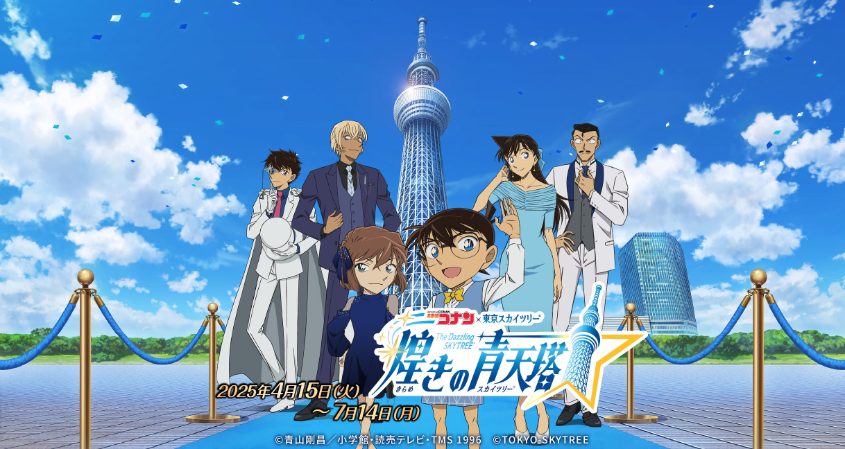 Key visual of “DETECTIVE CONAN x TOKYO SKYTREE The Dazzling SKYTREE”: https://cdn.kyodonewsprwire.jp/prwfile/release/M108036/202504087063/_prw_PI1fl_7Uf7eeXc.jpg Special website of “DETECTIVE CONAN x TOKYO SKYTREE The Dazzling SKYTREE” https://www.tokyo-skytree.jp/en/event/special/conan/ The 450-meter-high Tembo Galleria has an exhibition featuring the event’s key visuals. Limited-edition goods that are only available at the event and special cafe menu items are offered on this floor. In addition, a photo shoot service is available to those who want a picture of themselves with their favorite “Detective Conan” characters of their choice. On the 350-meter-high Tembo Deck, exclusive videos are screened on the windows converted into a giant screen of SKYTREE ROUND THEATER every night of the event. Also taking place during the evening, the exterior of the tower will have a special “Detective Conan”-themed lighting inspired by various characters from the anime.
