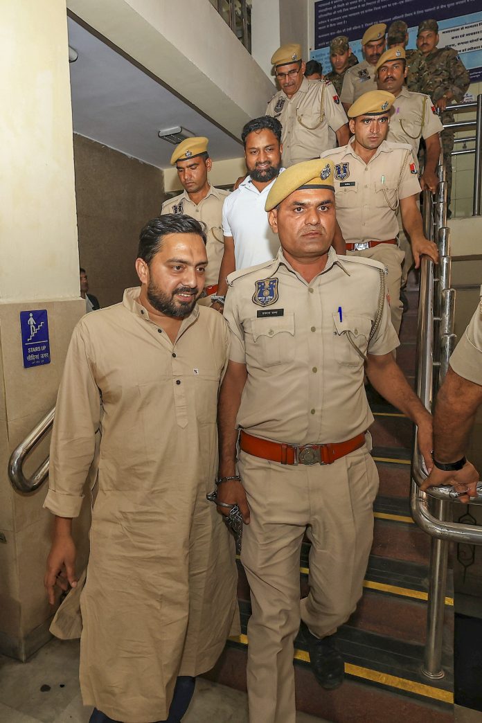 Jaipur: A convict in the 2008 Jaipur serial bomb blasts case being taken to custody after a Jaipur special court sentenced four convicts to life imprisonment in the case, in Jaipur, Tuesday, April 8, 2025. (PTI Photo)(PTI04_08_2025_000274B)