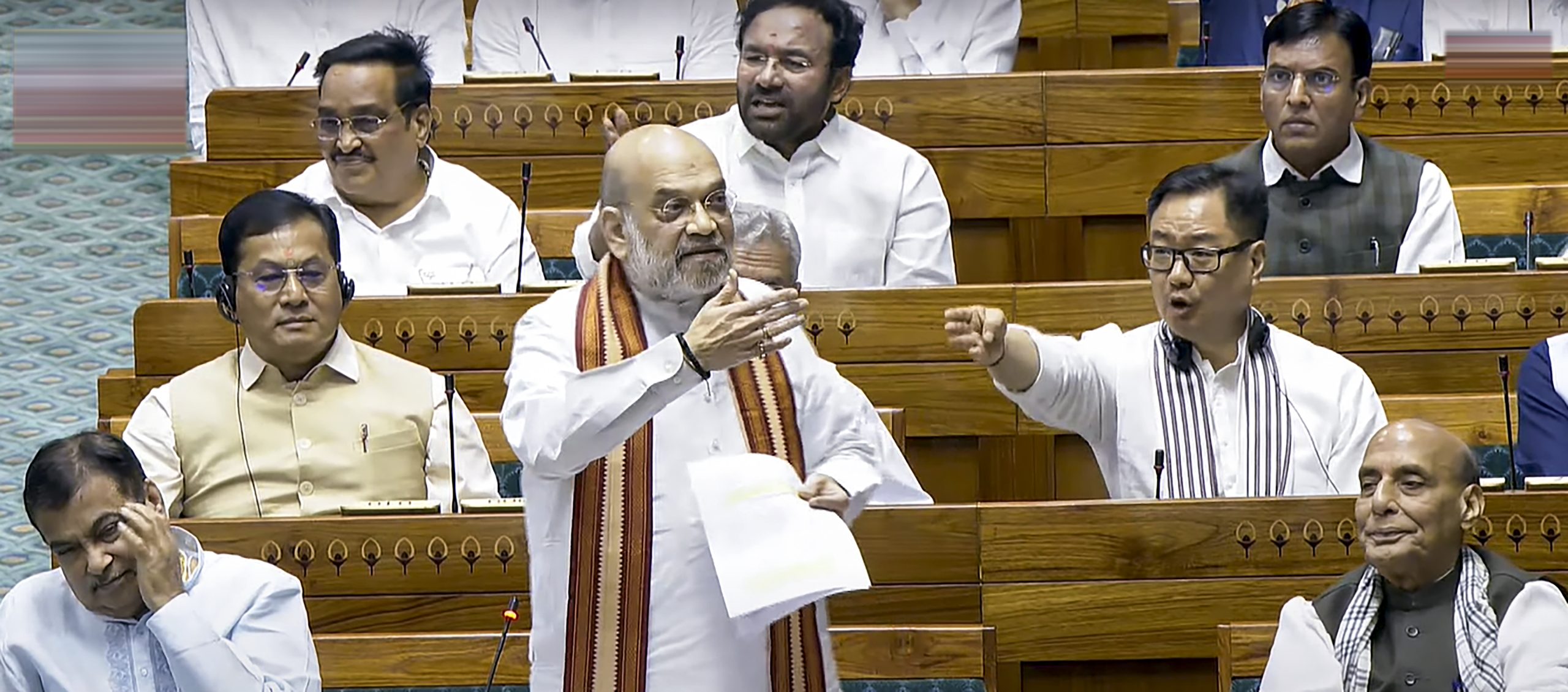**EDS: THIRD PARTY IMAGE, SCREENGRAB VIA SANSAD TV** New Delhi: Union Home Minister Amit Shah speaks during a debate in the Lok Sabha on the Pahalgam terror attack and Operation Sindoor, at the Monsoon session of Parliament, in New Delhi, Tuesday, July 29, 2025. (Sansad TV via PTI Photo)(PTI07_29_2025_000129B)