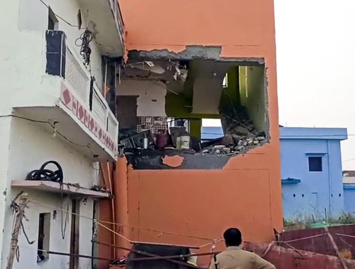 Haridwar: A house damaged after an alleged explosion took place, seriously injuring four members of a family, in Gajiwali village of Haridwar, Wednesday, April 9, 2025. (PTI Photo) (PTI04_09_2025_000174B)