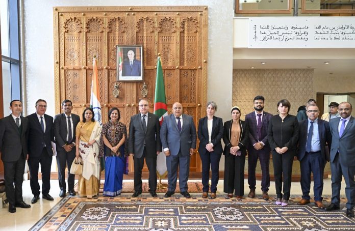 **EDS: THIRD PARTY IMAGE** In this image posted on March 29, 2026, Secretary (South) Neena Malhotra with Secretary General Lounes Magramane and others during the 7th Foreign Office Consultations between India and Algeria, in Algiers. (@MEAIndia/X via PTI Photo) (PTI03_29_2026_000489B)