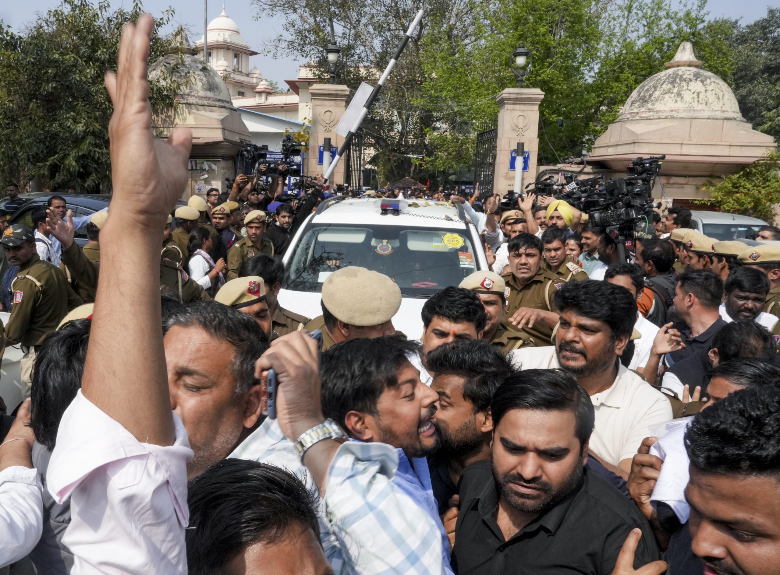 The protesters also allegedly engaged in a protracted scuffle with security personnel and police staff deployed at the venue. PTI MDB VN VN
