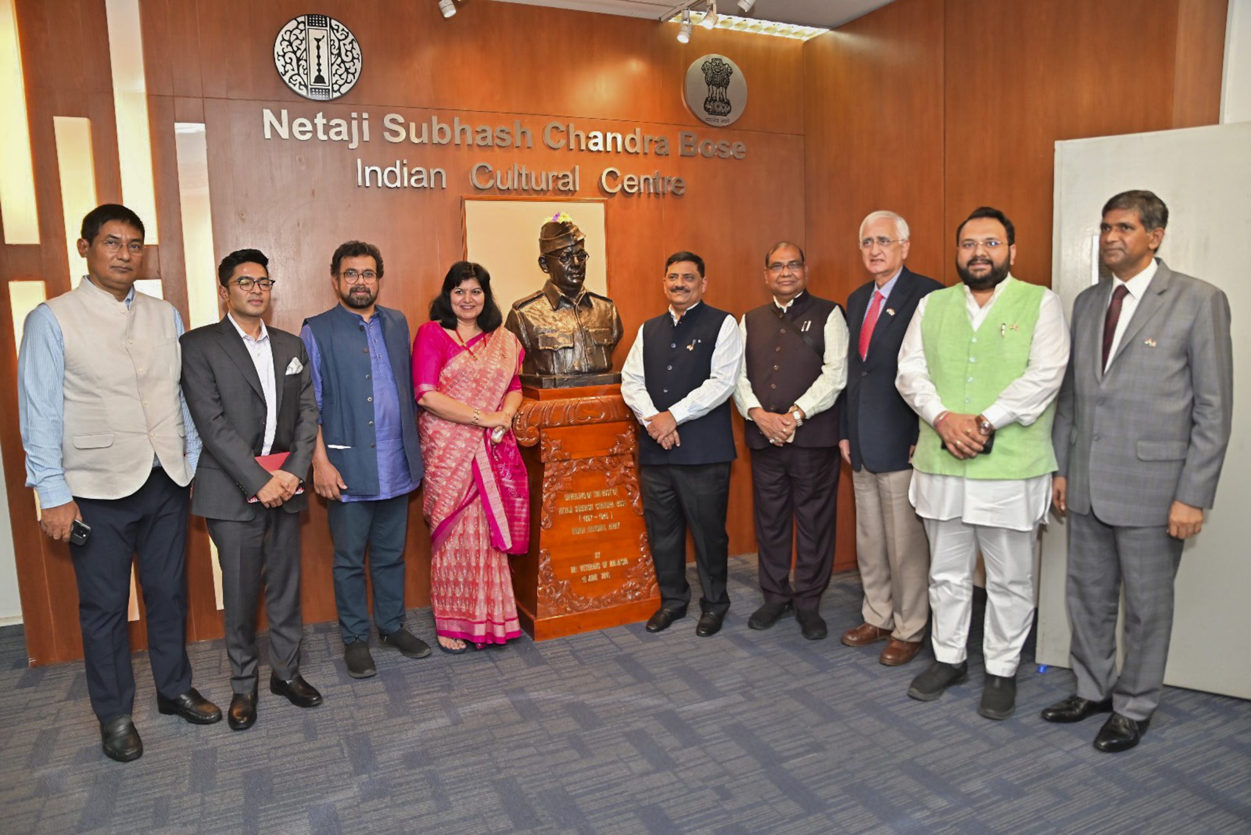The all-party delegation led by DMK MP Kanimozhi Karunanidhi began its visit to Spain by paying homage to the bust of Mahatma Gandhi.