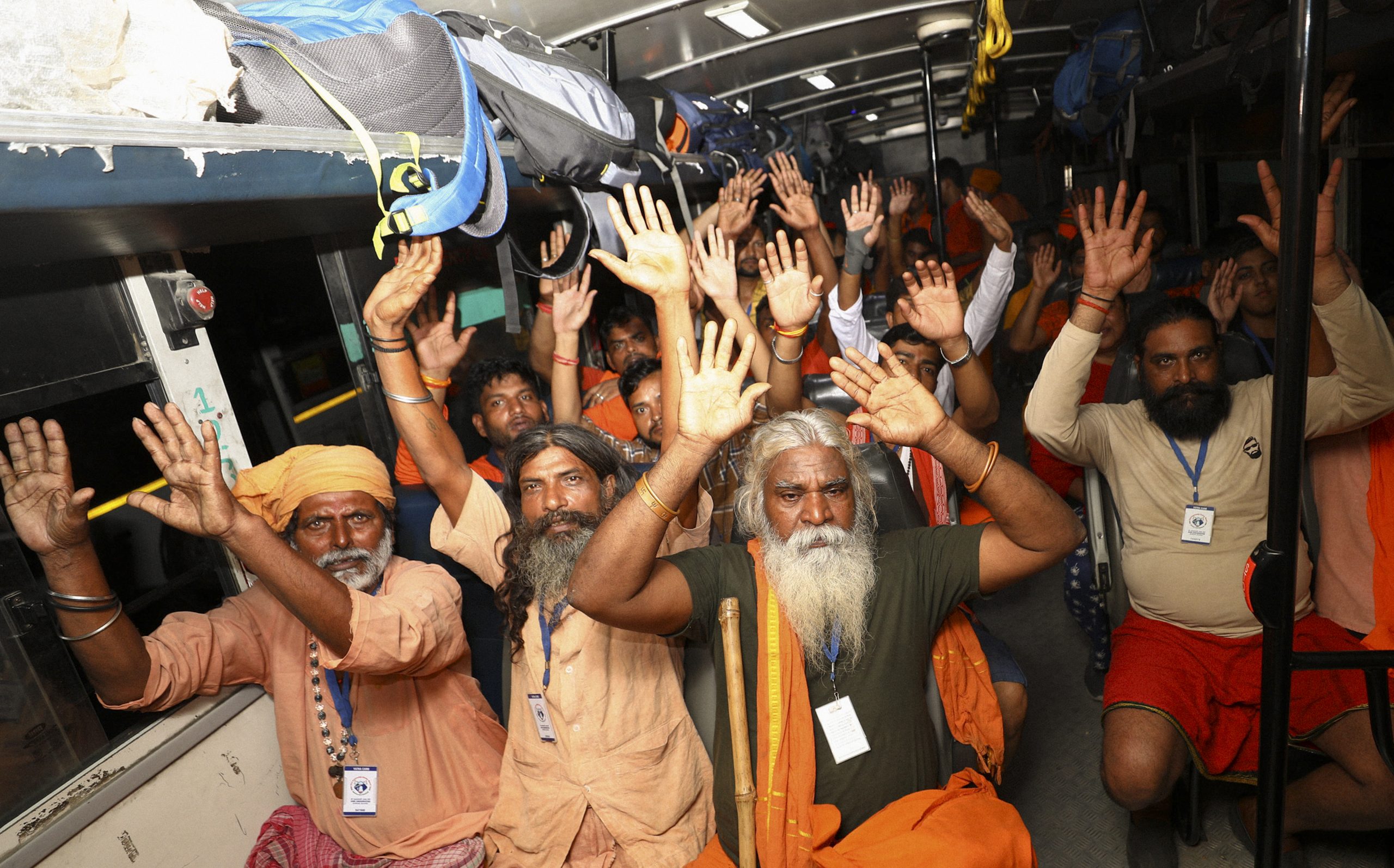 The third batch of 6,411 pilgrims — 4,723 men, 1,071 women, 37 children, and 580 sadhus and sadhvis — left in 291 vehicles, they said.