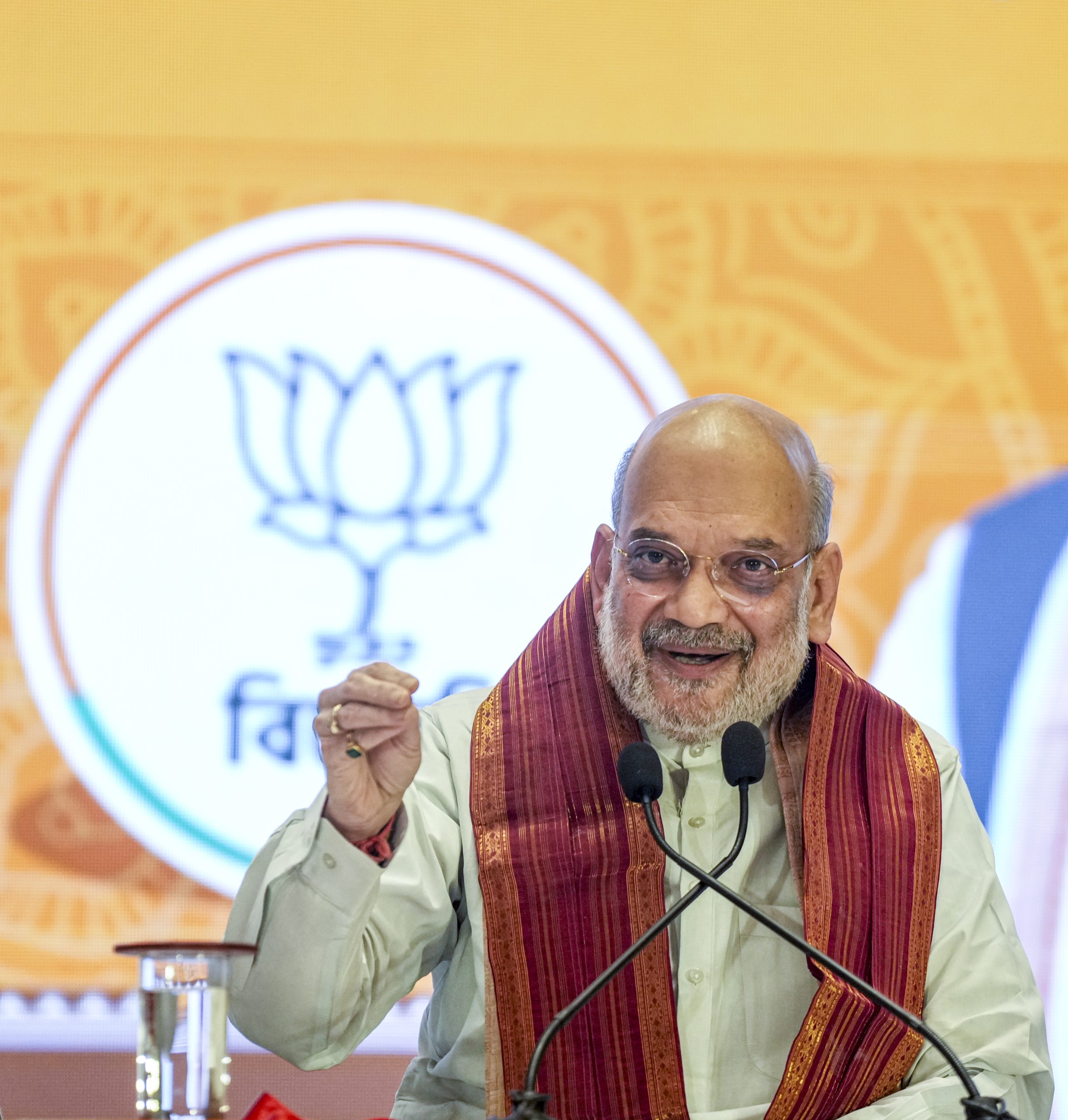 Kolkata: Union Home Minister Amit Shah addresses the media after releasing a ‘charge sheet’ against the TMC government, in Kolkata, West Bengal, Saturday, March 28, 2026. (PTI Photo/Swapan Mahapatra)(PTI03_28_2026_000096B)