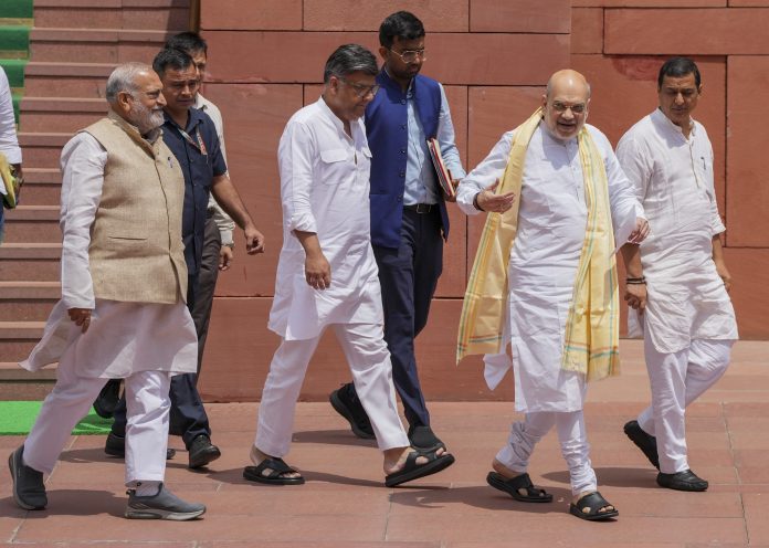 New Delhi: Union Home Minister Amit Shah during the Monsoon session of Parliament, in New Delhi, Thursday, Aug. 7, 2025. (PTI Photo/Atul Yadav)(PTI08_07_2025_000179B)
