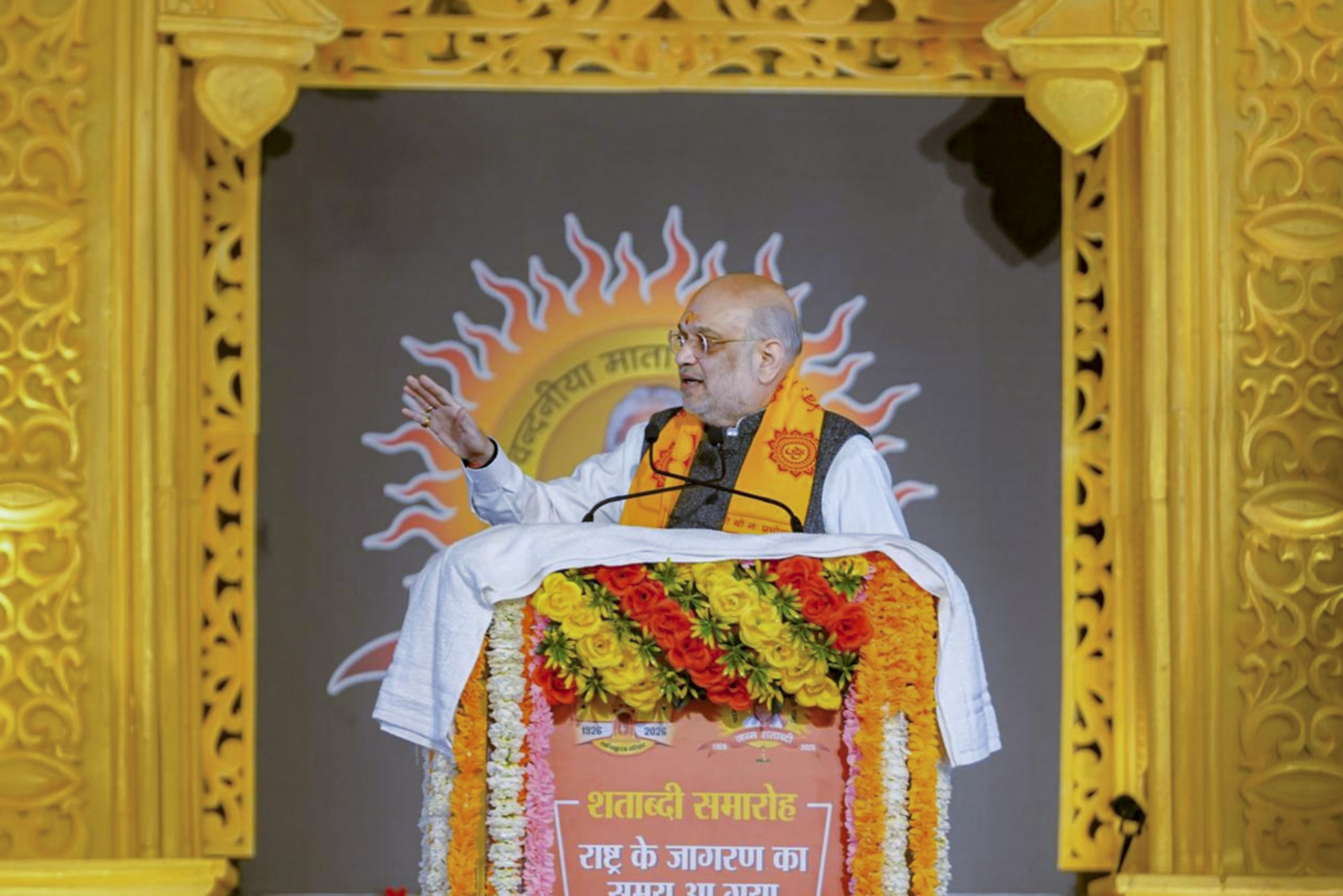 Haridwar: Union Home Minister Amit Shah addresses a gathering during the birth centenary celebrations of Param Vandaniya Mata Bhagwati Devi Sharma and the Akhand Deep year, in Haridwar, Thursday, Jan. 22, 2026. (PTI Photo)(PTI01_22_2026_000271B)