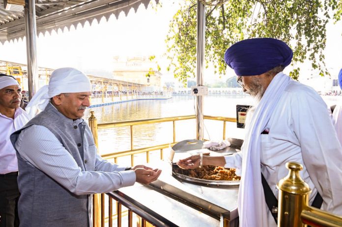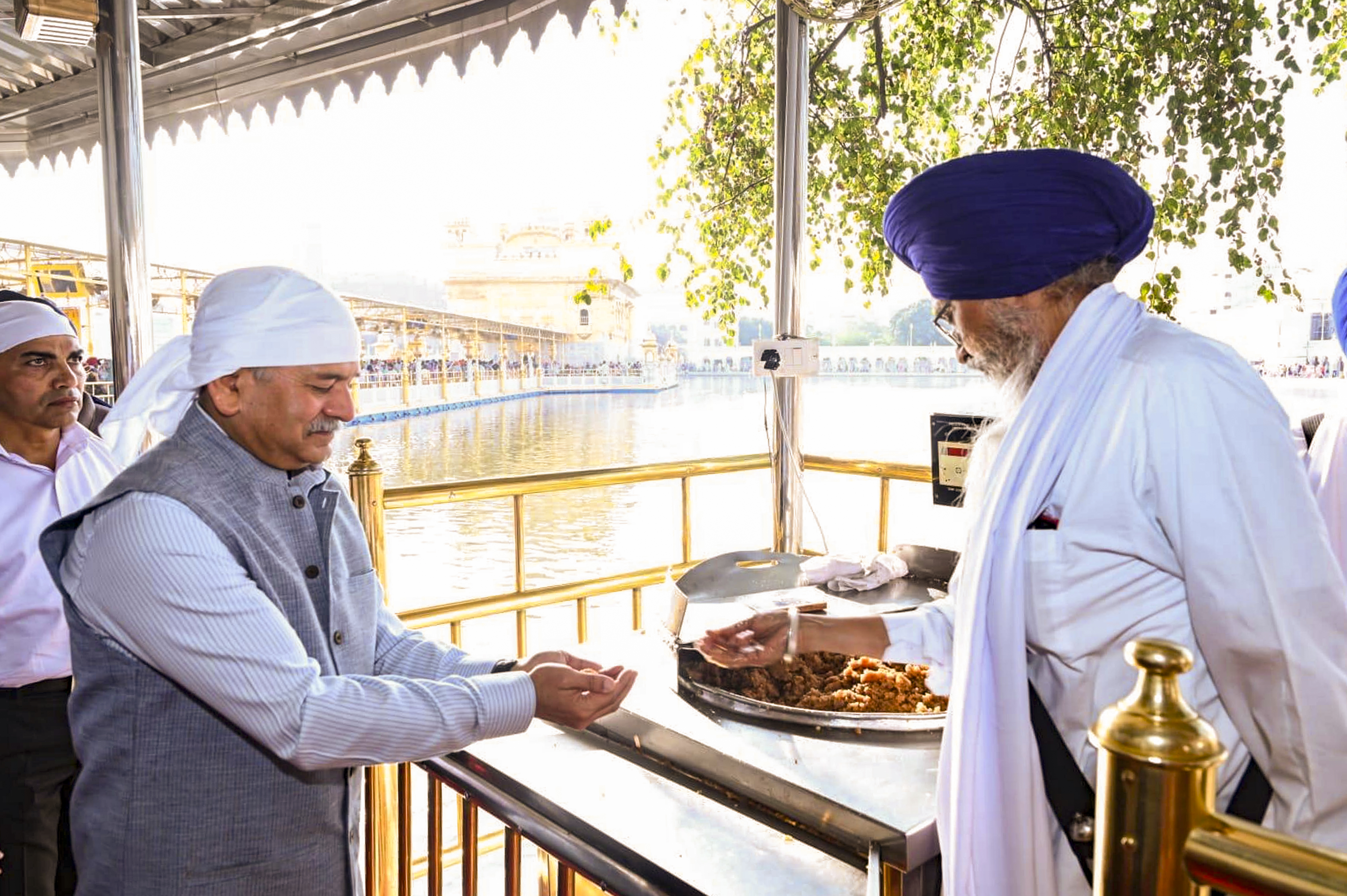 Amritsar: Chief of the Army Staff General Upendra Dwivedi collects ‘prasad’ during a visit to Golden Temple, in Amritsar, Saturday, April 12, 2025. (PTI Photo)(PTI04_12_2025_000429B)