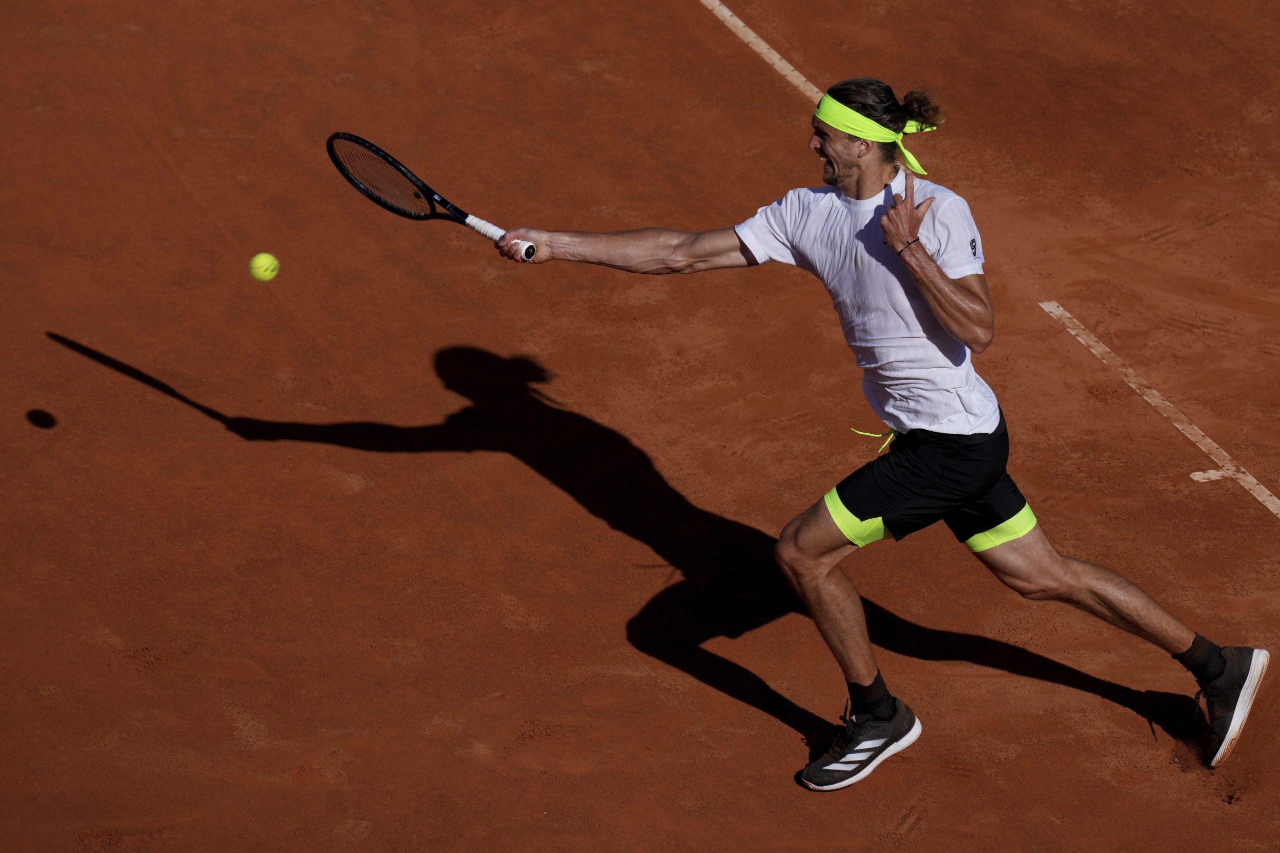 Germany's Alexander Zverev returns the ball to Lithuania's Vilius Gaubas at the Italian Open tennis tournament, in Rome, Italy, Sunday, May 11, 2025. AP/PTI(AP05_11_2025_000256B)