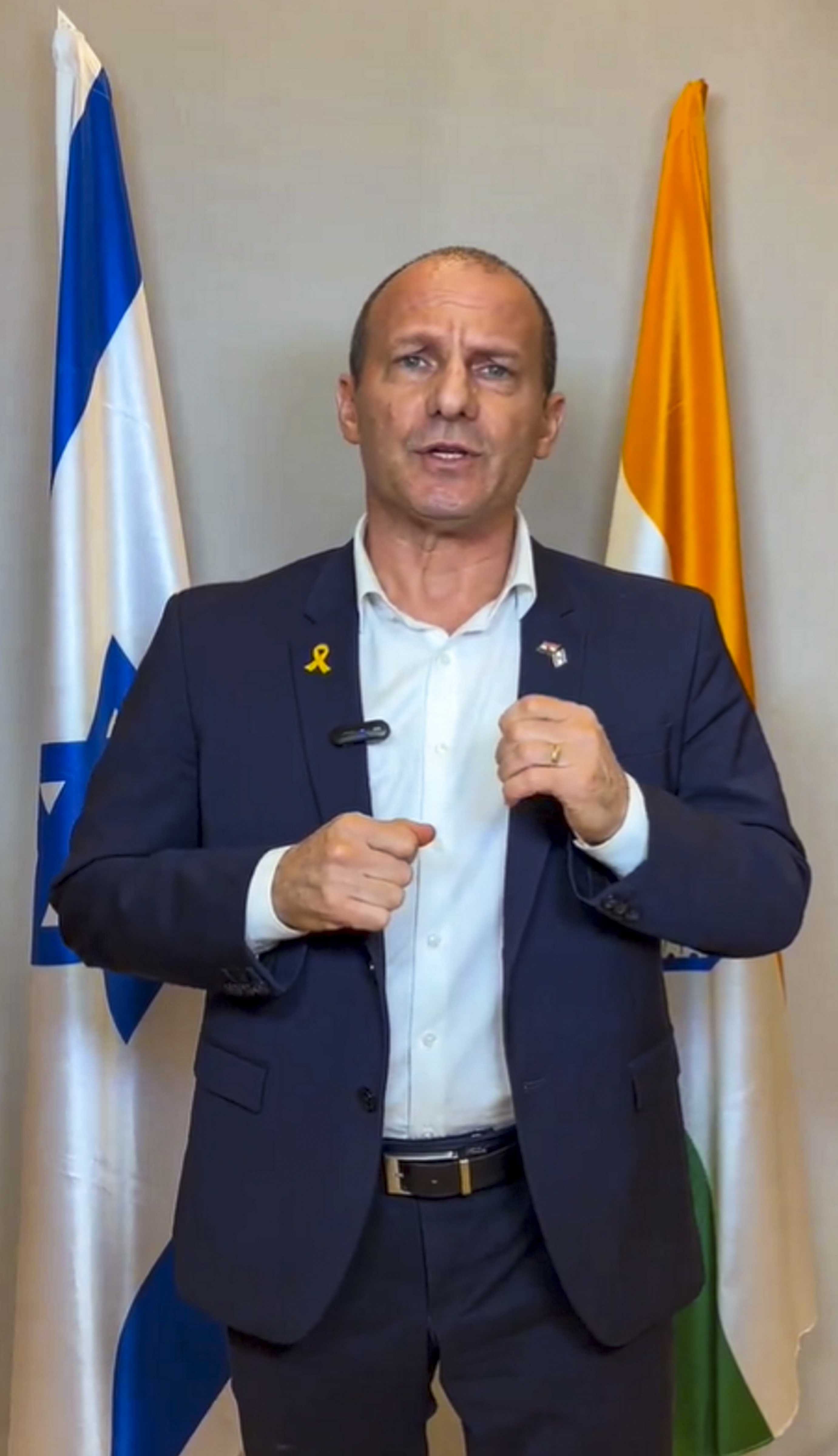 **EDS: SCREENSHOT, THIRD PARTY IMAGE** In this screenshot image taken from @IsraelinIndia via X on April 10, 2025, Ambassador of Israel to India Reuven Azar thanks Indian government for its efforts in bringing perpetrator of 26/11 Mumbai attacks to justice, via video message. (@IsraelinIndia on X via PTI Photo)(PTI04_10_2025_000254B)