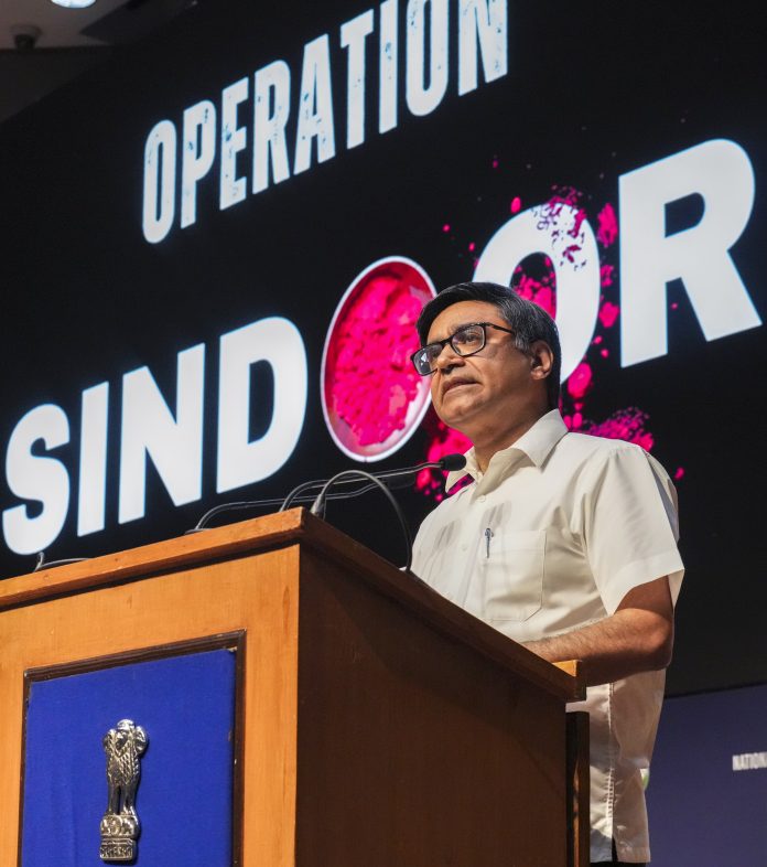 New Delhi: Foreign Secretary Vikram Misri addresses a press conference regarding 'Operation Sindoor', in New Delhi, Wednesday, May 7, 2025. Indian armed forces carried out missile strikes on terror targets in Pakistan and PoK under 'Operation Sindoor', in retaliation for the Pahalgam terror attack. (PTI Photo/Kamal Kishore)(PTI05_07_2025_000144B)